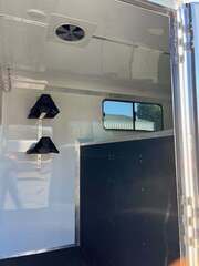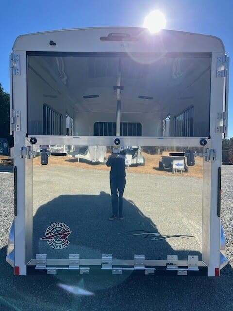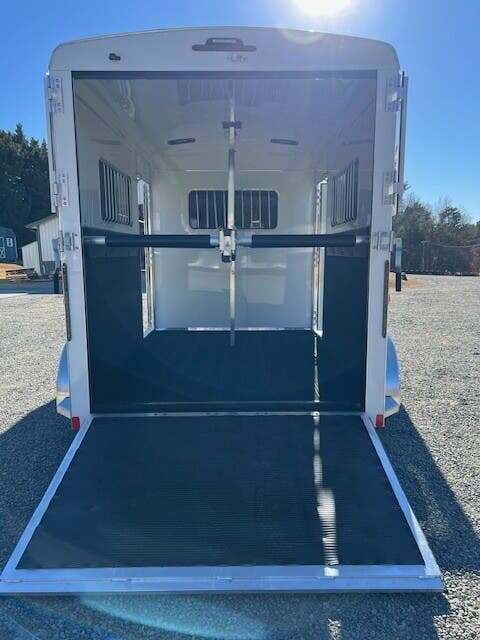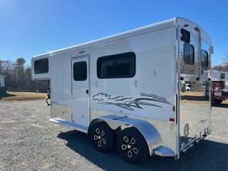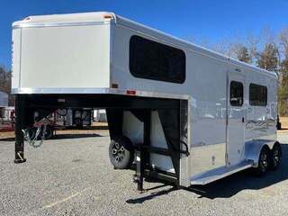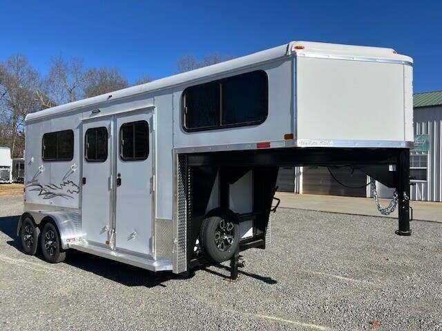 2026 Homesteader 2H GN w/3’6” Dress, 7’8”x7’, White, Diamond Series, Rear Ramp w/Curtain Doors w/Windows in Curtains, Shelby Flooring in HA, All Aluminum Roof, Aluminum Lined and Insulated Ceiling and Walls, 24” Aluminum Treadplate, Aluminum Wheels, Tubular Head & Shoulder Dividers, Removable Partitions, 2 Escape doors, 2 Saddle Racks, Bridle Racks, Brush Box, Blanket Bars, Maxx Air Vent, LED Lights, Loading Light at Rear Ramp, Dome Lights in Horse Area and Dressing Room, Mounted Spare Tire, GVWR 7000, Empty 4509, Carry 2491