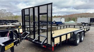 Connecticut Trailers features the following options for this Reiser Trailer: • 82”x20’ • 5’ Split Gate • Tube Top + Uprights • Adj. Coupler • Tube Spare Mount