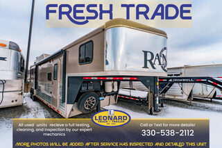 View Inventory: https://leonardtrailers.com/inventory/45259 Stock# 45259 Used 2019 Bison Coach Ranger 3H GN LQ Horse Trailer TRAILER INFORMATION Exterior: XT SS Coupler Size: 2 5/16” Primary Color: Gold Length: 27’ 6” Width: 8’ Height: 7’ 6” HORSE AREA Type: Slant Rubber Lining: Complete Escape Door: 1 Full Walk Out DRESSING ROOM Lined/Insulated TACK AREA Type: Rear Collapsible LIVING QUARTERS Size: 12’ Interior Colors: Brown A/C / Furnace Sofa Kitchen Sink Stove: 3 burners Refrigerator / Microwave Sink in Bath Toilet / Shower Slide Out OTHER DETAILS GVW: 17,920 lbs Axle Size: 7,000 lbs Tire Size: 16” # of Brakes: 2 Jacks: Single Hydraulic Ride Type: Rubber Ride Empty Weight: 10,654 lbs We offer outstanding financing options, accept trades, and can arrange nationwide NO HASSLE delivery! Inquire today for more information! (888) 333-6613 **We believe these specifications to be accurate. Any discrepancies are unintentional. Please verify information with a sales associate prior to purchase.** Stock Number:45259