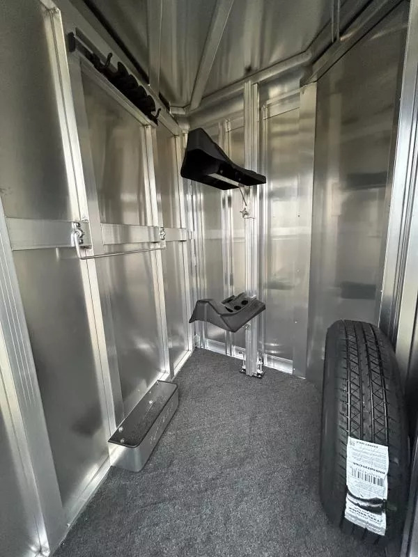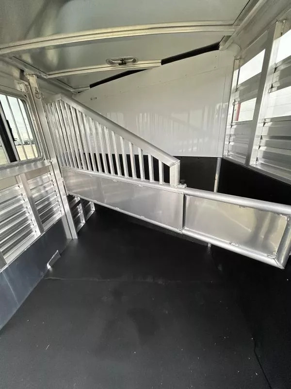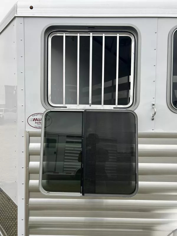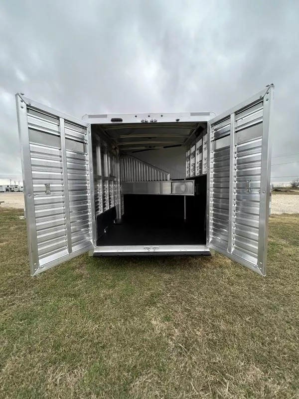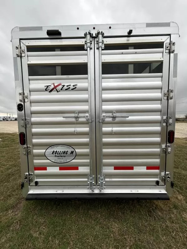 The Express CXF Edition from Exiss boasts the convenience of a horse trailer and the rugged nature of a livestock trailer thanks to streetside drop feed windows and curbside air gaps. * All-aluminum construction for durability and lightweight towing * 7’2” interior height for added comfort and space * Aluminum plank flooring with rubber mats for traction and easy cleaning * Smooth exterior skin with a clean, modern appearance * Spacious, well-ventilated horse area * Full-length running boards for convenient access * Divide telescoping slant-load divider for flexible stall setup * Airflow divider with bars for increased ventilation and visibility * Rear doors 50/50 stock-type for easy loading and livestock-style function * 16-inch wheels for improved stability and towing performance * Plexiglass inserts for adjustable airflow and weather protection * For more information call us at (512-746-2515)