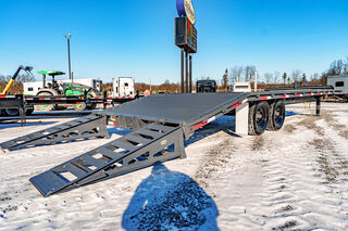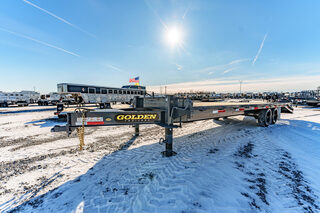 View Inventory: https://leonardtrailers.com/inventory/45338 Stock# 45338 New 2026 Golden GOLDEN SPECIAL 20+57KBP Bumper Pull Equipment Trailer The biggest, baddest trailer built to the maximum of every Golden  quality standard. From 16’ up to 30’ plus dovetail, we’ve got you covered. If you’re looking at dual tandem, you’re ready to haul something big and this big-boy can haul. Enough said. Model:GOLDEN SPECIAL 20+57KBP Warranty: 1yr- Limited Golden Special Flatbed Trailer Color: Gray (black stripe/decals, black wheels) Standard Specifications Frame (main): 10” I-beam (lbs per foot varies by length/capacity) Frame (side): 6” channel Crossmembers: 3” channel, 16” on center Tongue: 10” I-beam Axles: Dexter Spring (7K or 10K) Coupler: Jost, 2 5/16” (Gooseneck or tag) Jack: 12K side crank, single jack Tires: ST235/80R16E, 10-ply Hubs: 8 bolt on 6.5 Ramp: 5’ wedge, single hinge Flooring: #1 treated & kiln dried pine (2” x 8”) Lighting: LED Example Configuration: 20+5 7K Type: Single-tandem Deck Length: 20’ flat deck + 5’ dovetail Width: 102” wide Axles: 7,000# tandem axles Main Frame: 12 lbs per foot Options Angle Iron Dovetail Center Wedge Ramps Tool Box Lid (requires dual jacks & gooseneck) Torque Tube (recommended on 25+5 dual tandem, 10K axles)   We offer outstanding financing options, accept trades, and can arrange nationwide NO HASSLE delivery! Inquire today for more information! (888) 333-6613 **We believe these specifications to be accurate. Any discrepancies are unintentional. Please verify information with a sales associate prior to purchase.** Stock Number:45338