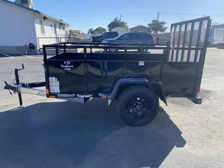 2026 C&B 5’ wide x 8’ long Single Axle Utility / Landscape Trailer. * 3500# Idler Axle * 15” Radial Tires * A-Frame Tongue * 32” Tall Sides to Top Rail * 22” Tall Solid Sheeting with Crimped Top * ATP Rockguards * Utility Rail Top Rail * 2x6 Wood Deck * Exterior Tarp Hooks * 4’ Tall Tubular Framed Rear Ramp Gate * Spare Mount on Side * Sealed Boxed Tail Lights * LED Light Package * Top Wind Jack * 2” coupler * 4 Way Flat Plug Call D2 Trailer Sales 209-745-5480 or for more info www.d2trailersales.com