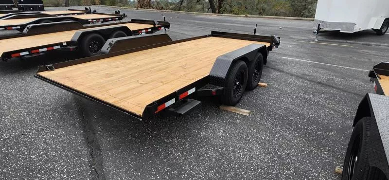 double axle, heavy-duty fenders, front bumper bar, stake pockets, d-rings, stow-away ramps,