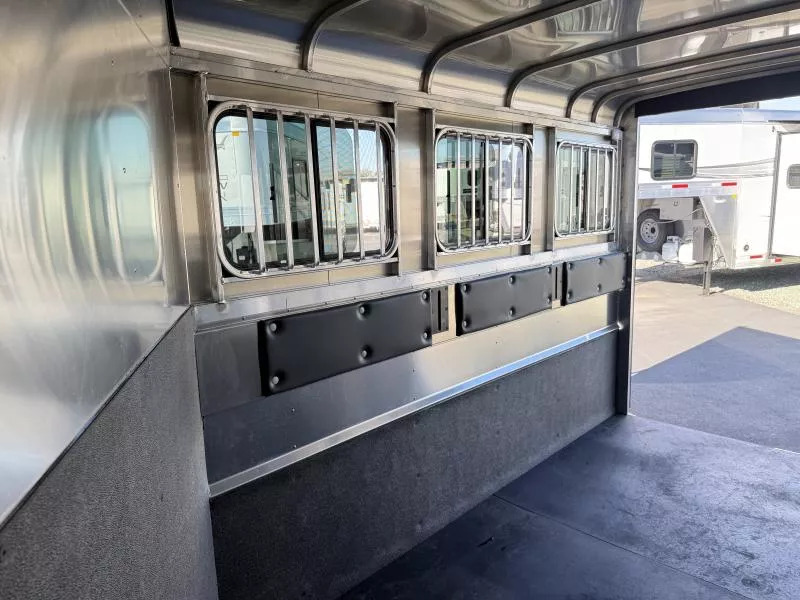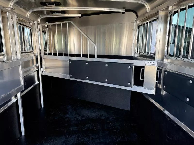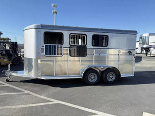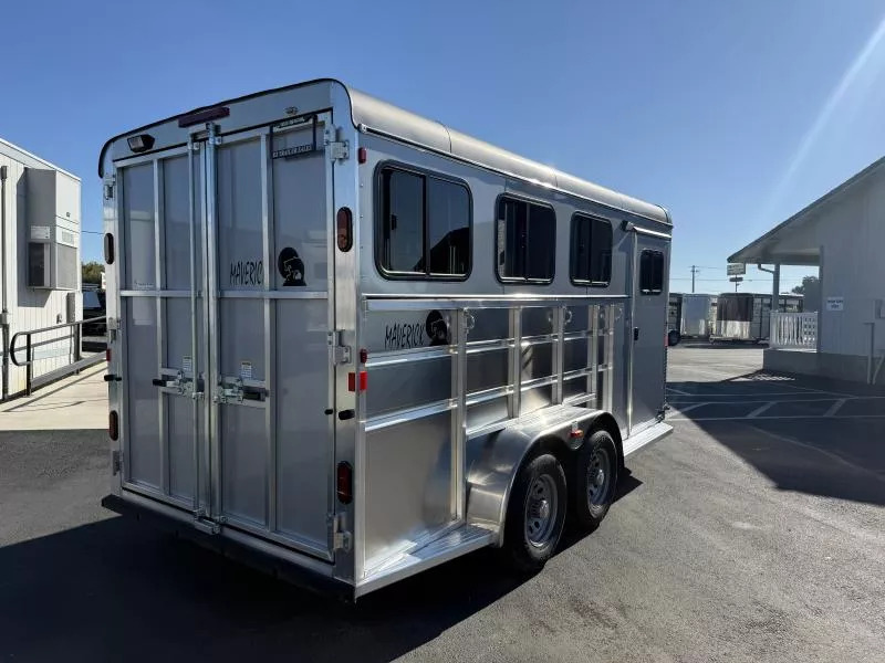 2026 Maverick Lite DX Enclosed 3 Horse Slant BP Trailer with Corner Water Tank. * 7’ Tall with 40” Wide Stalls * 7’ Wide * All Aluminum Construction * 3500# Torsion Axles * 15” Radial Tires 225’s * 4 Wheel Electric Brakes * Silver Aluminum Smooth Skin * Sealed Front Tack Area Includes: * Swing Out Saddle Rack * Spare Tire * Bridle Hooks * Blanket Rod * Carpeted Tack Floor * 36” wide Camper Door with Sliding Window * Porch Light * Brush Bag on Door * Interior Dome Light * Corner Water Tank * Horse Area Includes: * Drop Down Feed Windows with Drop Bars Headside * Sliding Windows Buttside * Double Rear Doors * Rubber Bumper * Rubber Floor Mats * Mats on Walls and Rear Door * Padded Jailbar EZ Latch Divider * Inside Tie Rings * Dome Light * Aluminum Diamond Plate Gravel Guard * Aluminum Fenders and Steps * Outside Tie Rings * LED Clearance and Tail Lights * Dual Tail Lights * 2 5/16” Bulldog Coupler Call D2 Trailer Sales 209-745-5480 or for more info www.d2trailersales.com