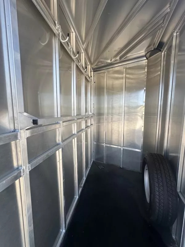 2025 Frontier Colt Series 2 Horse Slant Load Livestock Combo Demo Trailer Huge Savings! · 11’ Floor, 6’8” Wide, 7’ Tall, 40-1/2” Stall Width · Bumper Pull, V-Nose, 24” Stone Guard · All Box Tube Aluminum Chassis · One Piece, .040 Aluminum Roof w/ Heavy Duty Radius Roof Extrusion · Rubber Floor Matts and Rubber Wall Liner · Full Swing Out Rear Door and Rubber Bumper · Tandem 3.5K Braked, Dexter Torsion Ride Axles · Silver Mods., 225/75R15 - 6 Lug Wheels w/ Mounted Spare Tire · (1) LED Dome Light in Horse Area w/ Toggle Switch · (1) Double Action Pop-up Vent Per-Stall · Exterior LED Light · Safety Chains Across Rear Opening · 32”x72” Tack Storage Door w/ Sliding Window · .040 Pre-Painted Exterior Side Sheets · V-Nose and Driver’s Side Top, Extruded · Panels Lower Side · Tapered Running Boards · 2 Tier Removable Saddle Rack, Blanket Bar and 12 Bridle Hooks · Stock Side Panels w/ 2 Air Vent Channels Financing and Nationwide Delivery Available!