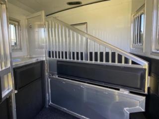 This new Brownstone Latte interior does not disappoint. Horse area features a Escape door and walk through door to living quarters, stud divider at first stall, easy care POLY flooring, lined and insulated horse area, Air flow dividers, one roof vent per horse, two tie rings per horse, mangers on the second and third stall, LED stalls lights and LED load light on a switch. Heavy duty drop down windows on the head side with drop windows on the curb side as well.