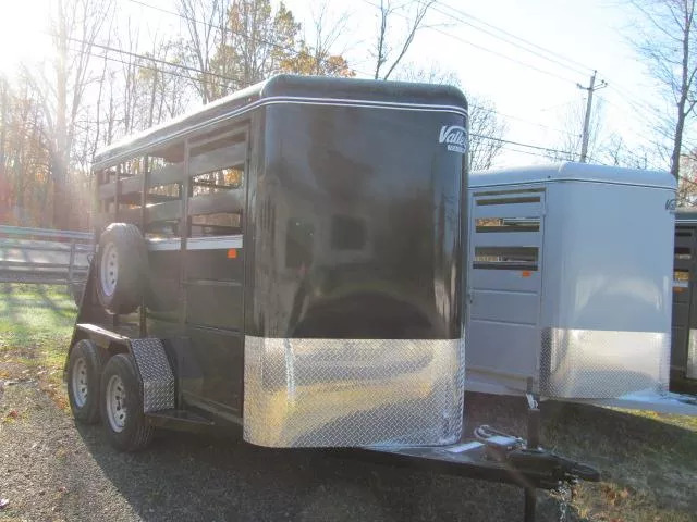 Valley 6 x 12 BP Stock Trailer 7’ Tall Side escape door Rear swing gate w/ slider Pressure treated floor Steel construction Spare tire