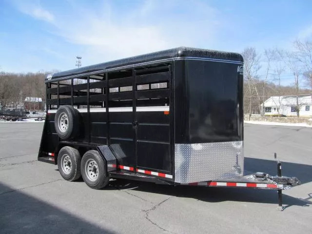 Trailers in stock: Horse Trailers, Stock Trailers, Equipment Trailers, Utility Trailers, Cargo Trailers, Dump Trailers, Car Trailers, Concession Trailers, Motorcycle Trailers, and Snowmobile Trailers.
