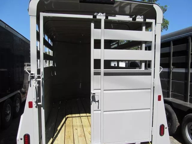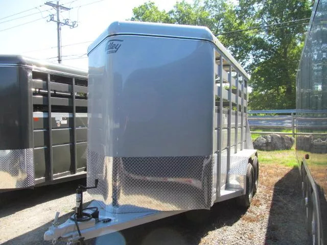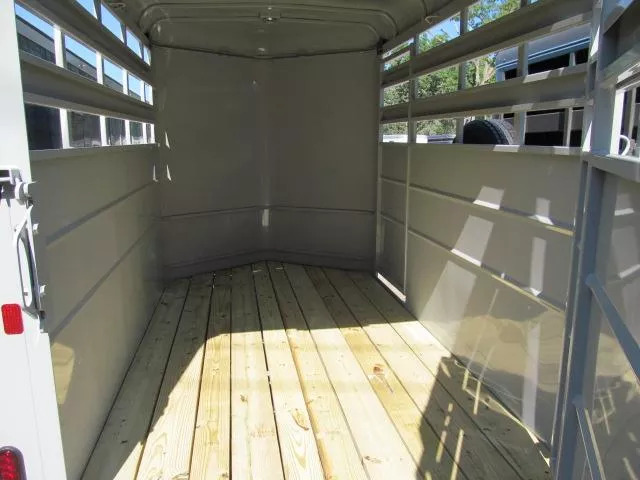 Valley 6 x 12 BP Stock Trailer 7’ Tall Side escape door Rear swing gate w/ slider Pressure treated floor Steel construction Spare tire