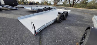 The Futura Super Sport LT500 is a high-performance car hauler designed to accommodate a wide range of vehicles, including supercars. Here are some of its key features: Hitch: 2 5/16” snap-on steel coupler Dimensions: 16’5” deck length, 81” deck width Construction: All aluminum design with silver anodizing and black powder coating Deck: Extruded aluminum 6005-T6 interlocking panels Lighting: Micro LED fender-mounted clearance lights, recessed LED stop, tail, and indicator lights, combined LED/reflector marker lights Charging: Onboard DC-DC connected to trailer plug aux pin and solar panel Electric Connector: 7-way RV flat pin trailer plug Load Capacity: 5678 lbs Special Features: Removable fenders, continuous airline track and slotted chassis rail for tie points, flared tail design for easy loading, 3-degree approach angle for low vehicles This trailer is designed to make loading and unloading effortless, even when not connected to a tow vehicle. It’s perfect for classic car collectors, track day racers, and supercar enthusiasts