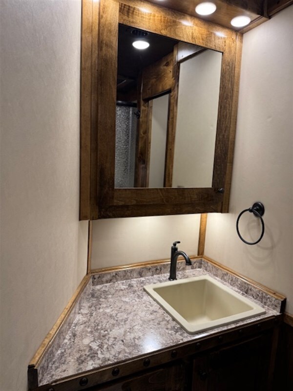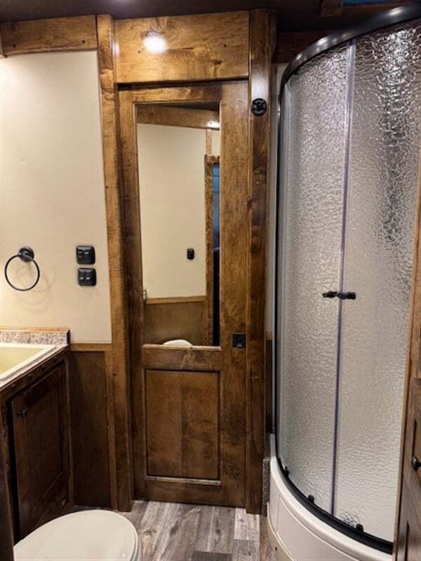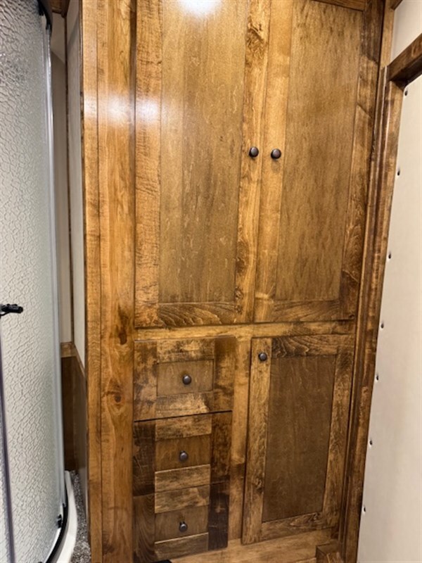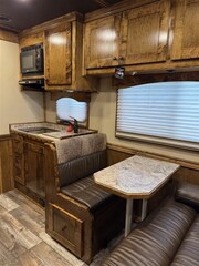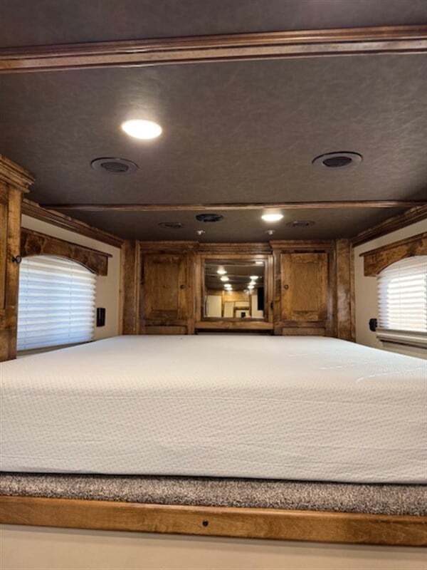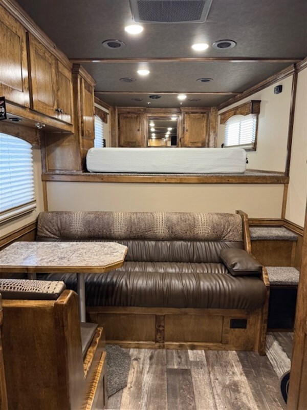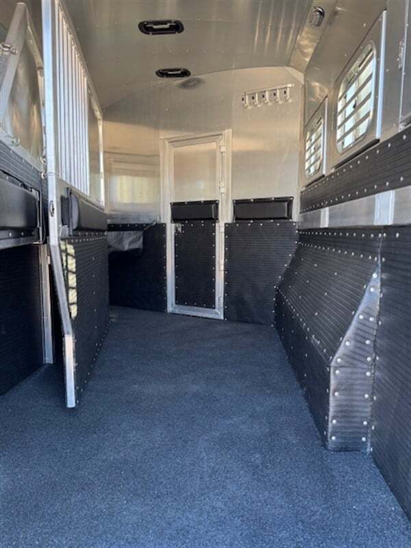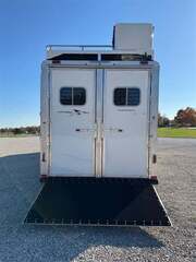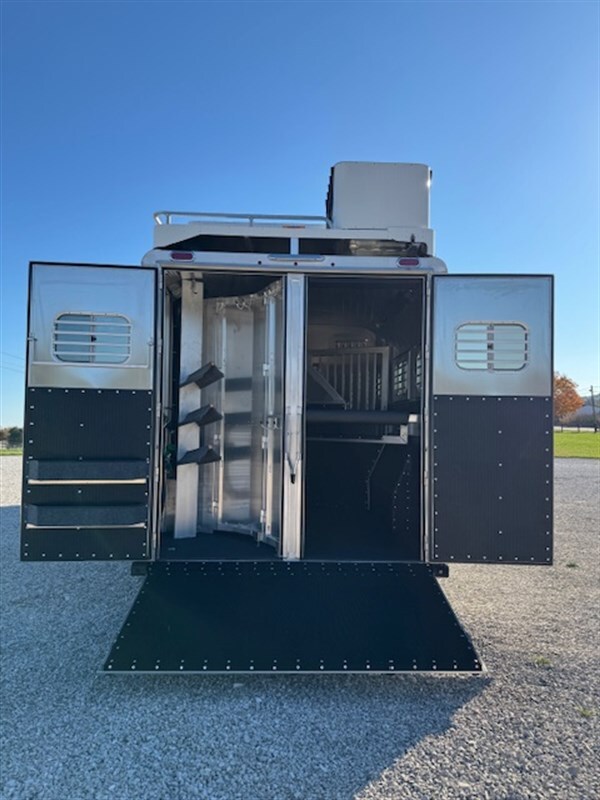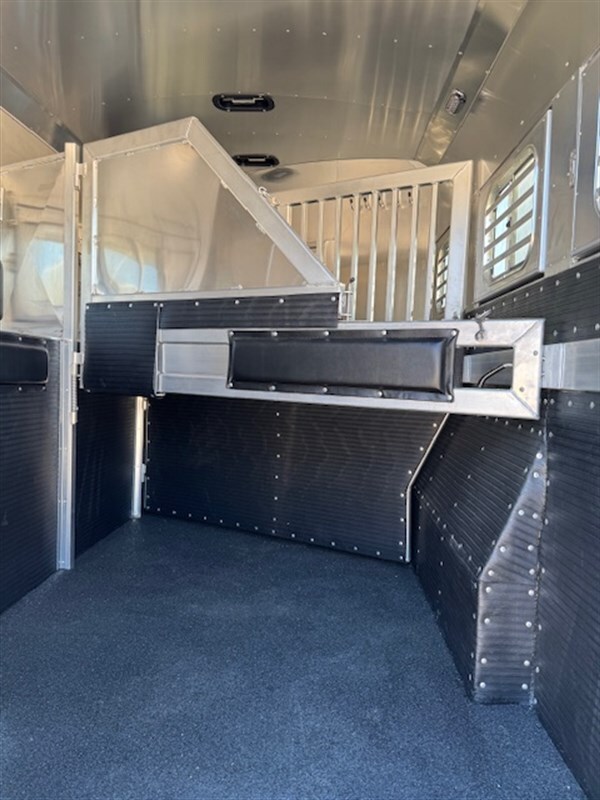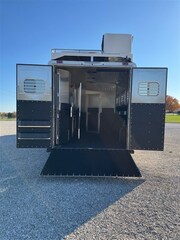 2016 PLATINUM 3H WITH 13’ SHORT WALL OUTLAW CONVERSIONS LQ 8’ Wide x 27’ Long x 8’ Tall LIVING QUARTERS FEATURES: Onan 4.0 Microquite Gas Generator Power awning with metal weather shield and LED lights AM/FM/CD/DVD/MP3/App/Sat Ready (2) Interior and (2) exterior speakers 32” LED flat screen smart TV Connect 2.0 WiFi, 4G, OTA, AM/FM (2) 12v USB Cell phone outlets (2) Interior courtesy lights (2) Exterior courtesy lights Lighted grab handle at LQ door Exterior porch light at LQ door Folding screen door Power roof vent with fan above shower Power vent hood above cooktop Recessed mirror in pocket door 7.0 Cu ft LP/120v refrigerator 2-Burner recessed cooktop with flush mount glass cover Microwave oven 7 Drawers 10 Gallon LP/120v water heater with electric start 60 Gallon fresh water tank Exterior water faucet under nose (2) 30 lb LP tanks with auto change over 15,000 BTU ducted air conditioner with heat pump 20,000 BTU ducted LP furnace Bathroom vanity with medicine cabinet and mirror 32” Radius shower with sliding door 72” Pull out sofa sleeper Half dinette with removable table Day and night pleated window shades Snap cover over LQ door window Outlaw flex queen mattress (2) Spot reading lights above bed Walk thru door from bathroom to stall area Light switch for stall area lights on bathroom wall TRAILER FEATURES: (2) 7,000 lb Dexter rubber torsion axles 4-Wheel electric brakes Axles blocked 2” and gooseneck raised 2” to allow for greater clearance between truck bed and gooseneck (5) 235/85R 16” 14 ply tires with 4,400 lb load capacity each and 81 mph speed rating (5) 8 Hole aluminum wheels 12,000 lb Single leg hydraulic jack WERM flooring in horse area and rear tack Horse area walls and ceiling are lined and insulated 2-Way roof vent above each horse Aluminum battery box Haypod with enclosed lid Generator compartment mounted on roof with platform Full with spring loaded rear ramp 50/50 Rear doors Stainless steel nose Round LED clearance lights Additional clearance lights on each top rail (3) LED exterior load lights (25) Bridle hooks (2) Brush trays (3) Tier removable saddle rack Collapsible rear tack Spring loaded dividers 1st stall divider is full to top and bottom with flow thru bars at hip Bottom divider is rubber lined on both sides Rear divider is telescoping Escape door at head of 1st stall stall  Drop down feed door with separate drop down window bars at head of each stall Drop down door at rear of each stall Manger with exterior access door at 2nd and 3rd stalls Fold up flow thru step at escape door and LQ door Camper door latch and butter fly latch at escape door MSRP: $178,013.00 SHININ’ B PRICE: $148,500.00 Financing Available with approved credit...Delivery Available