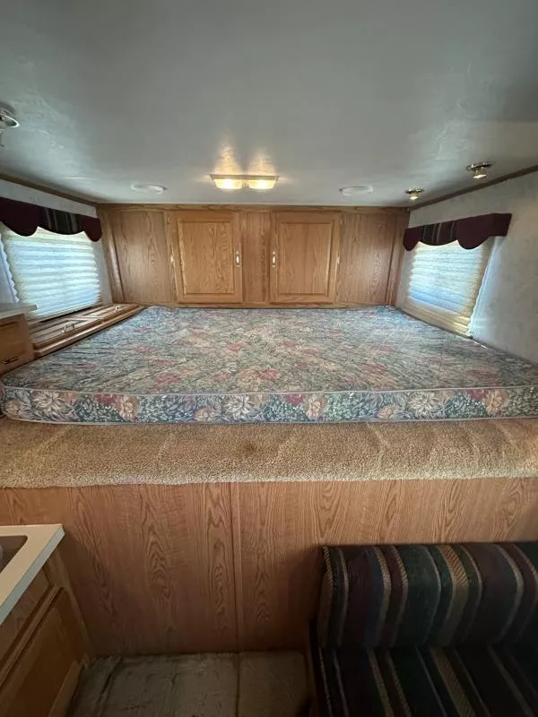 Other Features - 8 lug Alcoa wheels, 1 rear load light, rear rubber bumper, 4 exterior tie rings, aluminum battery box w/ 2 heavy duty batteries, dual propane tanks, dual electric jacks, spare tire, 16’ awning.