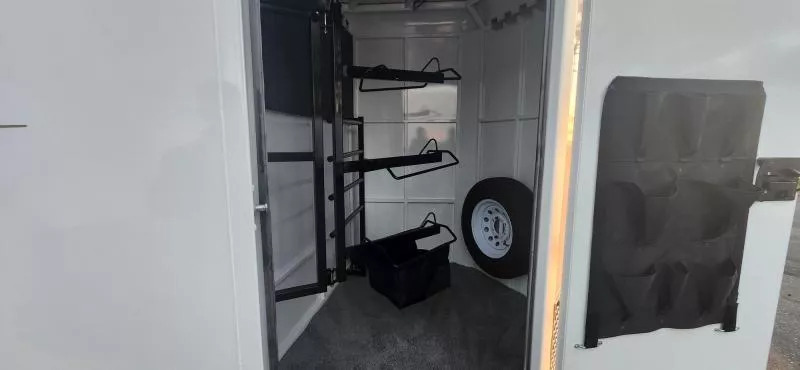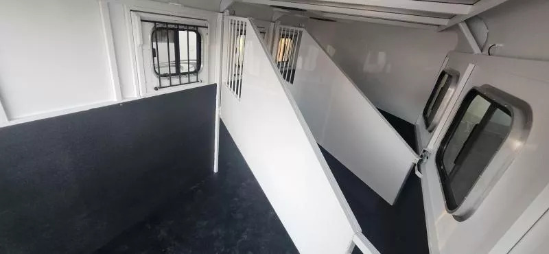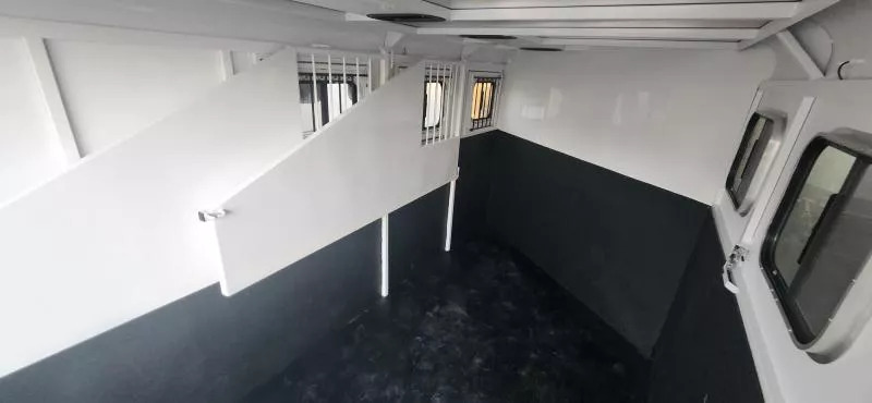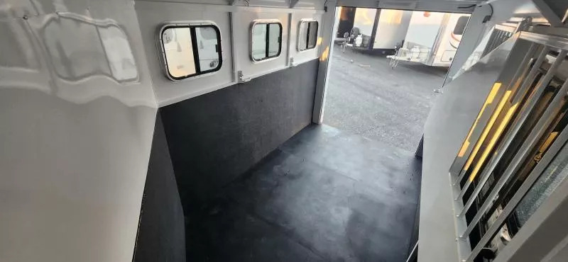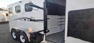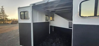 Bumper Pull Horse Trailer with tack room. Fully enclosed horse compartment with drop down feed windows head side, tail side windows and roof vents in each stall. Rubber floor mats and walls mats. features:-Water tank-Rear double doors with windows-Full Carpet Tack