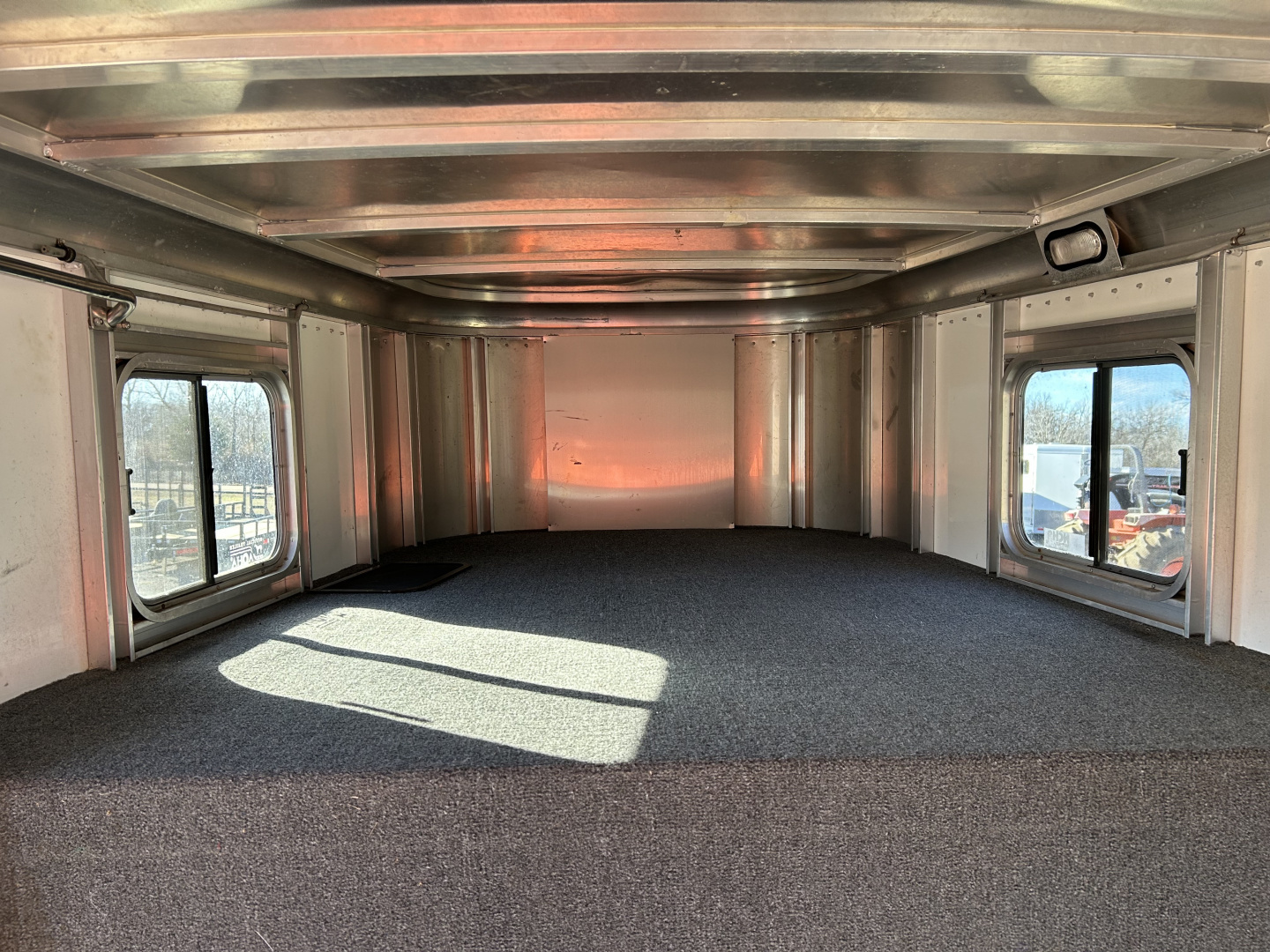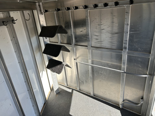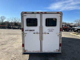 2001 SOONER REVOLUTION 3 HORSE SLANT 5200# AXLES 16” TIRES LR-G FULL SIZE SPARE DOUBLE REAR DOORS, INDEPENDENT W/ CENTER POST FOLD DOWN WINDOWS ON HEAD SIDE, SLIDING WINDOWS ON BUTT SIDE FULL LENGTH RUNNING BOARDS NEW WERM FLOORING EXTERIOR TIE RINGS CARPETED TACK ROOM AND GN 3 SADDLE RACKS, BRIDLE HOOKS AND UTILITY HOOKS IN TACK ROOM