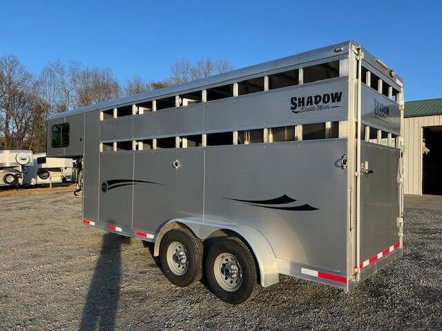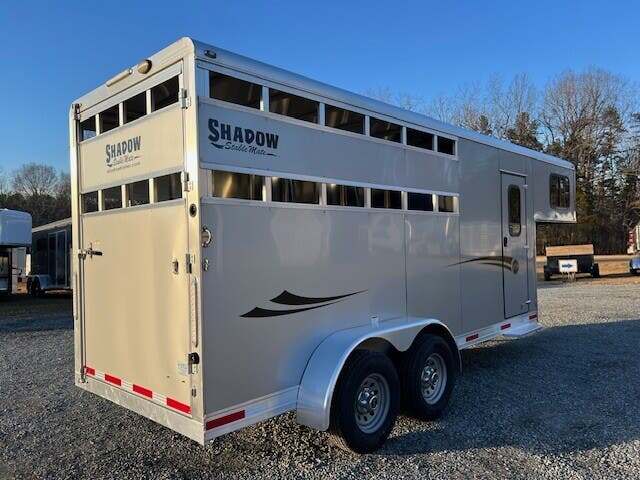 2022 Shadow Stablemate 3H GN SL Stock/Combo w/Dress, 7’6”x 6’4”, Silver, Single Rear Door, Wood Floor w/Mats, Alum Over Steel Frame, V-nose, Plexi-Ready, Removable Partitions, 15’ Long Wall in HA, 10’ Short Wall in HA, Rubber Lined Walls in HA, 24” Short Wall in Dress, Loading Lights, Interior Lights, Dressing Room, Windows in Dress and Dressing Room Door, (3) Saddle Racks, Bridle Racks, 110 receptacle in Dress, Torsion Axles, Spare Tire, Max Truck HT 59”-60”+/-, GVWR 7800, Empty 3300, Carry 4500