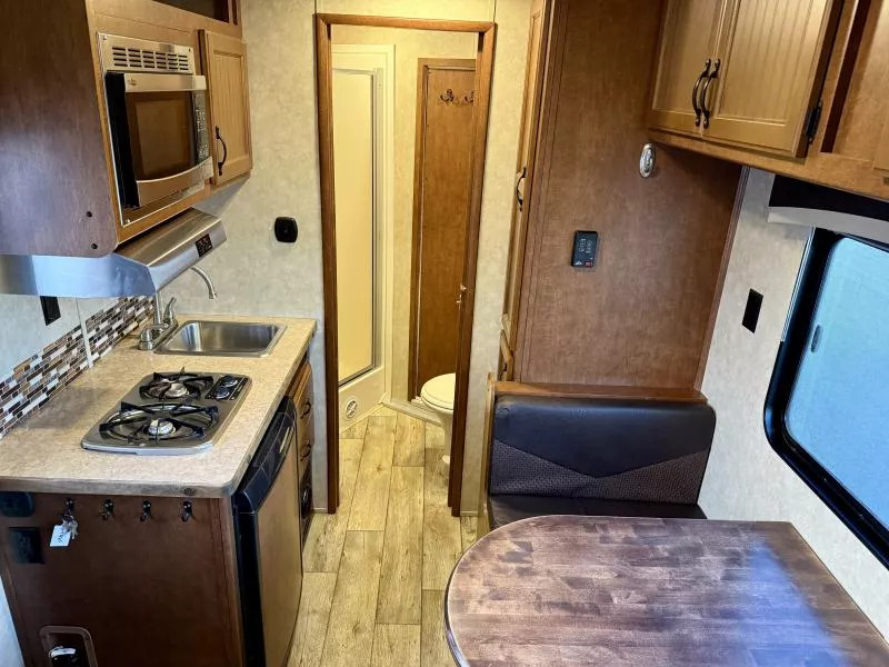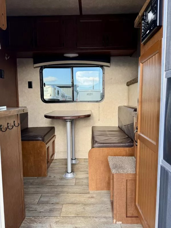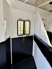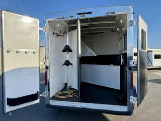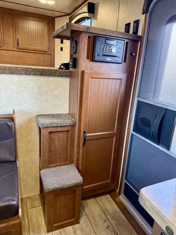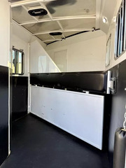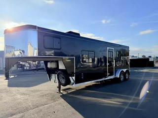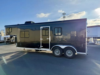 Used 2017 Bison 7208 Trail Boss LQ - 2 Horse Slant Living Quarters Trailer. * 7’ Wide, 7’4” Tall * Steel Frame and Aluminum Skin * (2) 6000# Axles with 4 Wheel Electric Brakes * 235/80R16” Radial Tires * LED Exterior Lights * Stainless Nose * 12K Crank Jack * Dual Propane Tanks * Dual RV Batteries * Black Aluminum Smooth Skin * Interior features: * Camper Door with Screen Door * Wardrobe Closet * Dinette * Overhead Cabinets * 3 cu ft Refridgerator * Furnace * 13,500 BTU A/C * 6 Gallon Gas Hot Water Heater * Cooktop with Range Hood * Microwave * Stainless Steel Kitchen Sink * Sliding Pocket Door into Bathroom * Shower with Glass Door * Foot Flush Toilet * Linen Closet * Closet Beside Shower * Roof Vent * Horse Trailer Features: * Escape Door with Window * Padded Slant Divider on Slam Latch * Lower Stud Panel * Drop Down Windows with Drop Grills Headside * Sliding Windows Buttside * Pop-Up Horse Area Vents * 60/40 Double Rear Doors * Rubber Bumper * Rubber Floor Mats * Fold-Up Rear Tack Wall with: * Removable 2 Tier Saddle Rack * Bridle Hooks * Brush Tray Call D2 Trailer Sales 209-745-5480 or for more info www.d2trailersales.com