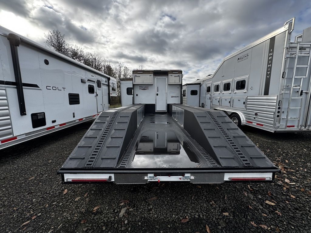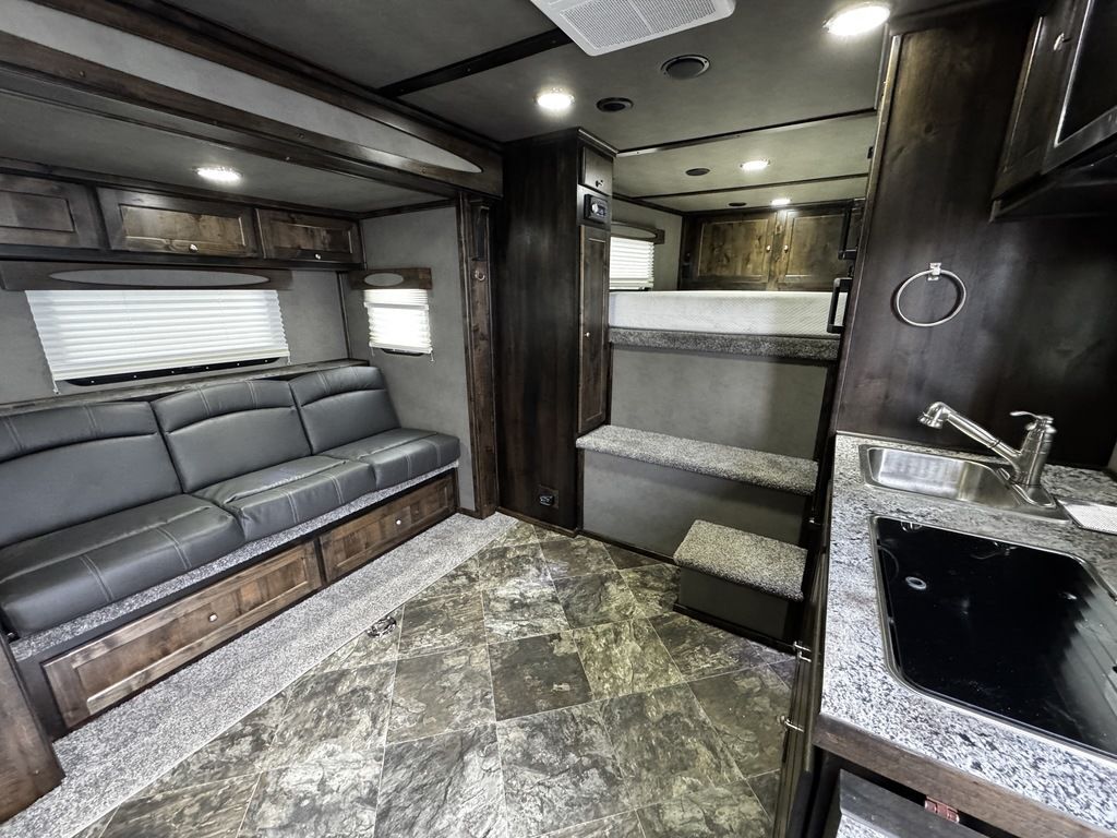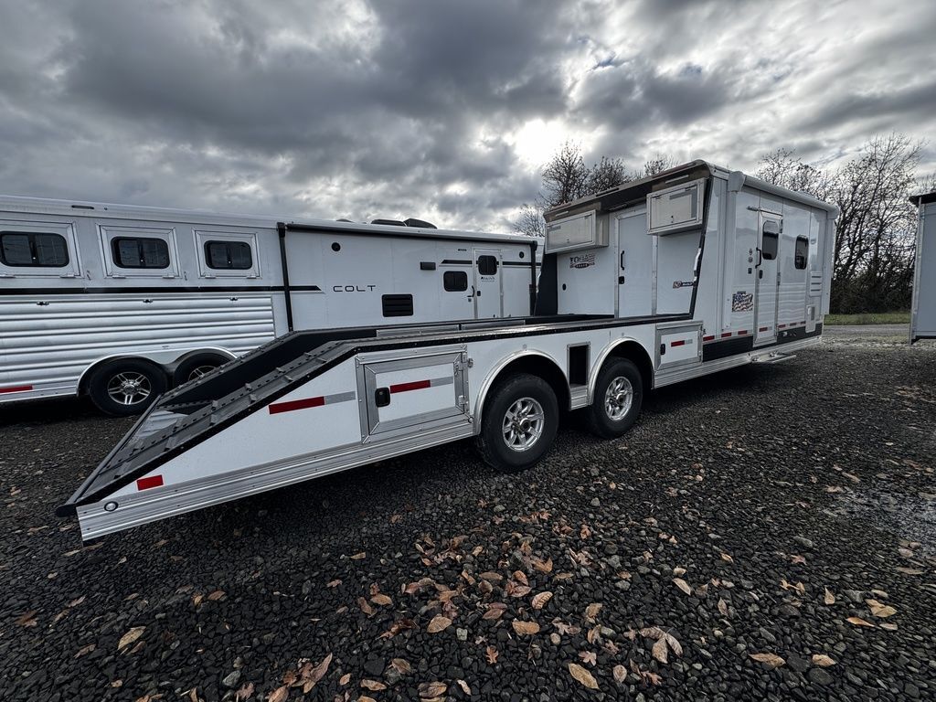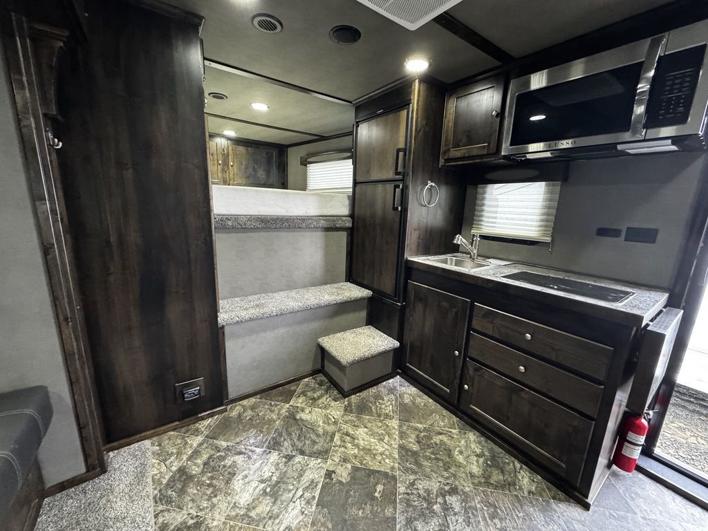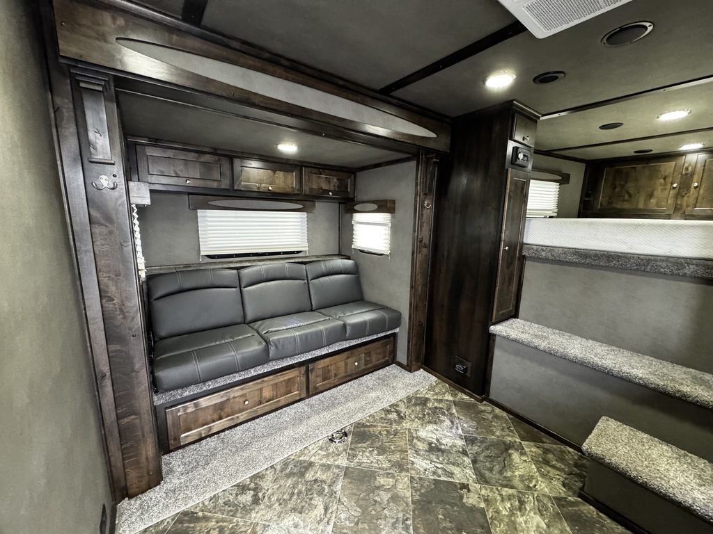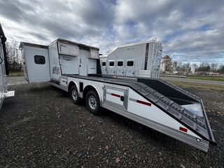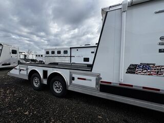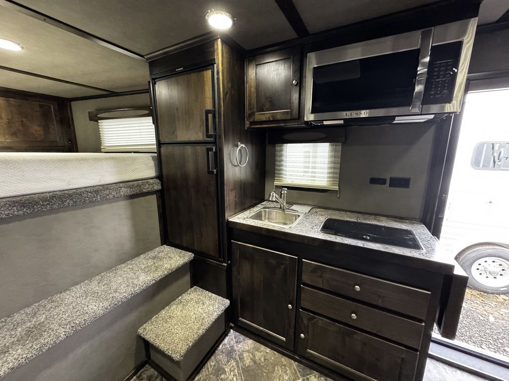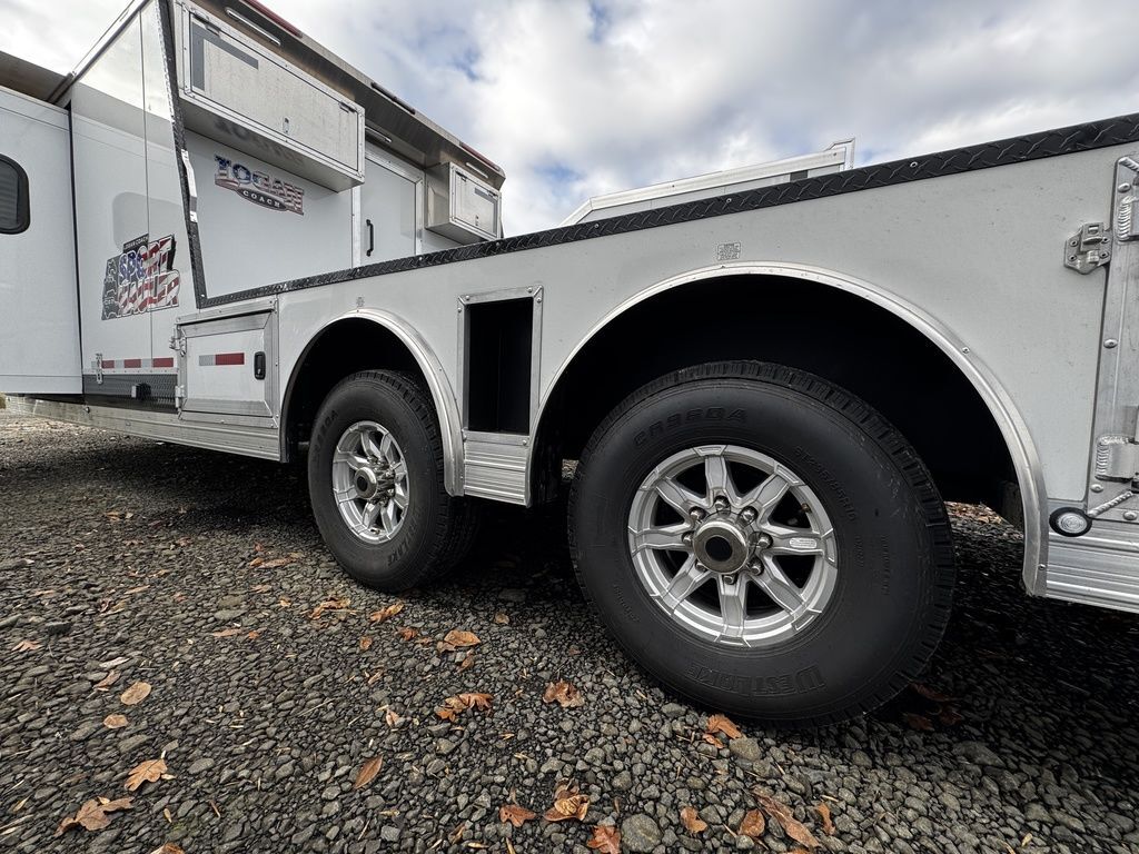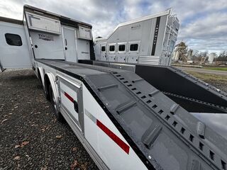 2024 Logan Coach 12x12 Sport Hauler 18’ Open Deck Features May Include: STRUCTURAL 7’ 6” Tall 8’ 6” Wide .040 Aluminum One Piece Roof Skin W/ Aluminum Cove And Roof Bows On 24” Centers 102” Outside Width /50” Between storage deck compartments 6’ Tapered Gooseneck Nose 48” Spread Axles Rear Ramp WHEELS, TIRES and AXLES 8000# Dexter Torsion Tandem Axles 22.5 Degree Down Axles Provider Brand Tires - G Rated/14 ply 235/85/R16 Self Adjusting Brakes 4-Wheel Electric Brakes EXTERIOR Aluminum .050 Side Sheets Attached W/ 3M Vhb Bonding System Vortex Rubber Coating Under GN 37” Hd Man door W/ Window Over Drivers Side Axles Aluminum Mill Finish Taillight Trim Pkg CARGO DECK AREA Vortex rubber sprayed OPEN-DECK garage area with under storage compartments. 4’ Dove Tail Man door in Bulkhead Wall E-Track welded to frame 2 - Aluminum Cabinets Mounted on Bulkhead Wall Heavy Duty Aluminum Slide in Ramps APPLIANCE 6-Cubic Ft. Refrigerator Microwave / Convection Oven 2-Burner Glass Cover Cooktop Air Conditioner Furnace Flat Screen TV with Swing Arm (in bed area) TV Antenna with Built-In Radio Antenna INTERIOR DÉCOR Interior Package – Ebony Stain Larraine Smoke Wall Board Simulated Leather Jack-Knife Sofa Vinyl Flooring Soft Touch Day/Night ShadesFlip up Counter Queen Size 6” Memory Foam Mattress PLUMBING 60-Gallon Fresh Water Tank 38-Gallon Black Tank 38-Gallon Grey Tank Suburban 10-Gallon DSI Water Heater ELECTRICAL CD/DVD Player & Radio Light Fixtures Exterior Power Kill Switch BATHROOM Porcelain Toilet Shower with Glass Door Solid Wood Bathroom Door Power Vent Skylight Above Shower CABINETS Solid Wood Knotty Alder Cabinets with Flat Panel Doors Nickel Cabinet Hardware WARRANTY 8-Year Structural 2-Year Hitch To Bumper Limited Lifetime Corrosion Warranty on Galva-Strong Frame All Horse Trailers, will be ran through our service department AFTER they are sold. Pickup & Delivery time is based on the service department’s schedule at the time of purchase. *Please review all features with a salesperson. We try our best, but sometimes features and dimensions get mislisted. Thank you!* Akins Trailer Sales541-995-4884* Located in Harrisburg, Oregon* Financing Available* Trade-Ins Welcomewww.akinstrailersales.com