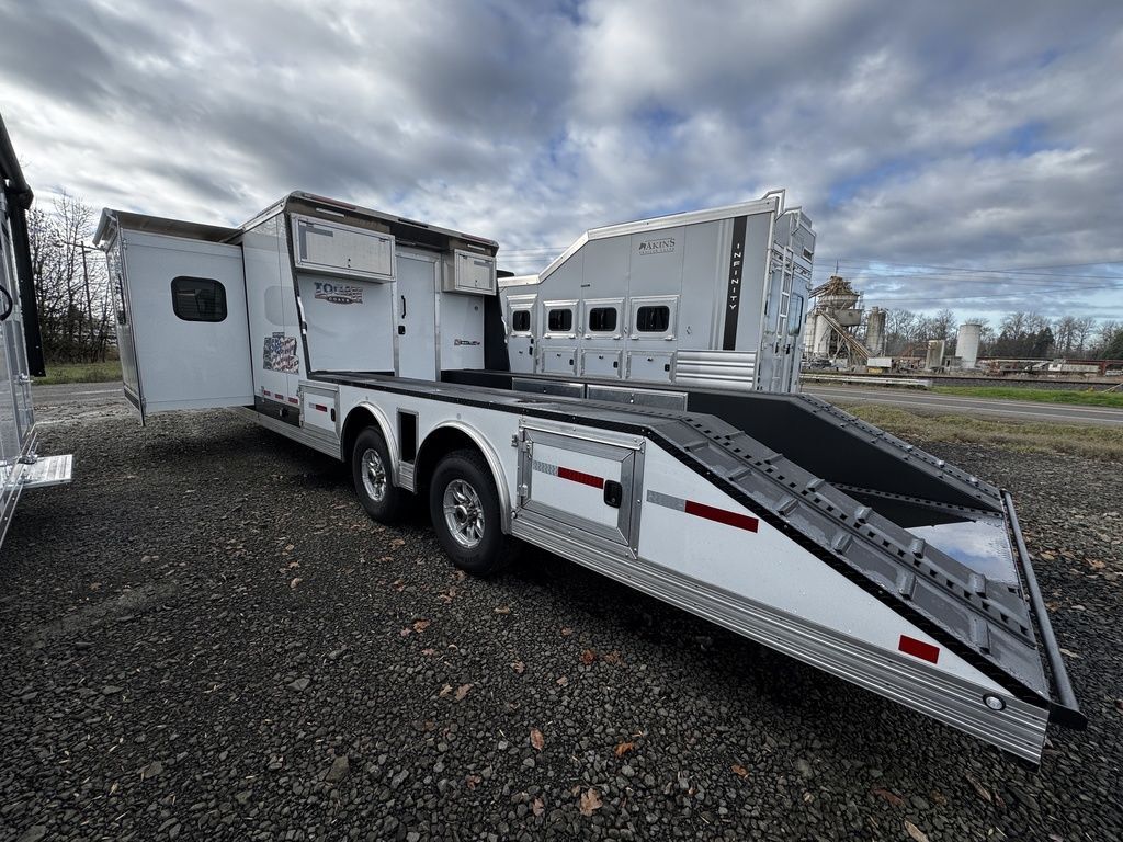 Akins Trailer Sales was started in 2006 by Thad and Rochelle Akins. Thad at the time was working for a large RV manufacturer. The manufacturer asked him to do the due diligence on a mid-West based RV company they were interested in acquiring. While touring the RV manufacturer’s facilities, it was brought to Thad’s attention that the company also owned a horse trailer manufacturer. That company was Bison Coach. The Akins’ were in the market for their first living quarter trailer and really liked what they saw for the price. They decided to purchase a trailer for themselves and started hauling it to all the PRCA and Amatuer rodeos they were competing in. At nearly every stop they were approached by other competitors and spectators asking about their trailer. There were no Bison dealers in the Northwest at the time, so Thad and Rochelle worked a deal with Bison Coach to represent their trailers on the side. They started out with a single trailer to display at their house…their own personal trailer.