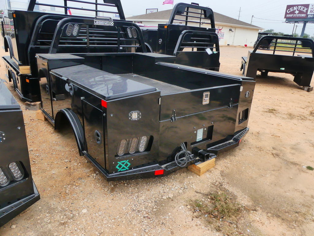 The install price is $1300; prices may vary depending on the truck3 AND 1/2” INTEGRATED TUBE HEADACHE RACKOur headache racks are crafted with superior materials to ensure your safety in unexpected situations. The 3 1/2” integrated tube design enhances durability and support, offering unmatched protection.EXCEPTIONALLY DURABLE POWDER-COATED FINISHAt Legend X, we apply a high-quality powder coating to our truck beds, ensuring every nook and cranny is covered. Our method guarantees a more durable, longer-lasting finish with an unparalleled shine.4” STRUCTURAL STEEL CHANNEL FRAME RAILSOur truck beds are built with solid 4” structural steel channel frame rails, avoiding the use of roll-formed runners. This design choice leads to enhanced strength, durability, and internal rust prevention.4 FLUSH-MOUNTED 360° ROTATING D-RINGSLegend X truck beds come with four flush-mounted, 360° rotating D-rings, offering exceptional versatility and secure load anchoring. This design ensures maximum stability and adaptability, keeping your cargo securely in place from start to finish. 1/8” STEEL TREADPLATE DECKDesigned for heavy-duty applications, our steel treadplate deck is robust and enduring, outperforming the 11-gauge and 13-gauge floors used by competitors, for demanding work conditions.30,000 LB. RATED GOOSENECK HITCHFeaturing a top-tier gooseneck hitch tested independently for superior performance, our hitch ensures reliable hauling capabilities along with a 7-way electrical plug for diverse power needs.MODULAR SEALED WIRING HARNESSOur wiring harnesses are built to resist corrosion, wear, and disconnection, offering reliability in even the most severe conditions.24,000 LB.-RATED BUMPER PULL HITCH2.5” is Standard with an industry-leading bumper pull hitch that integrates into the frame, Legend X provides exceptional towing capacity for all your needs.STANDARD 7-WAY ROUND PLUG ON REAR TAILBOARDThis standard inclusion ensures compatibility with any trailer, enhancing connectivity and performance.