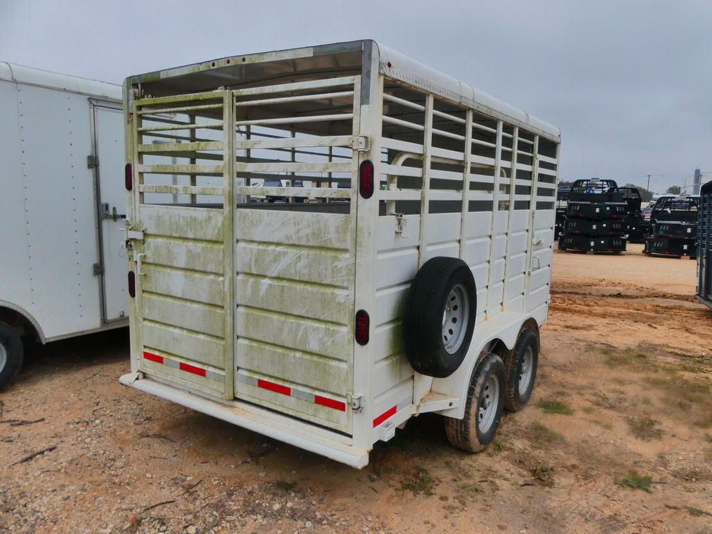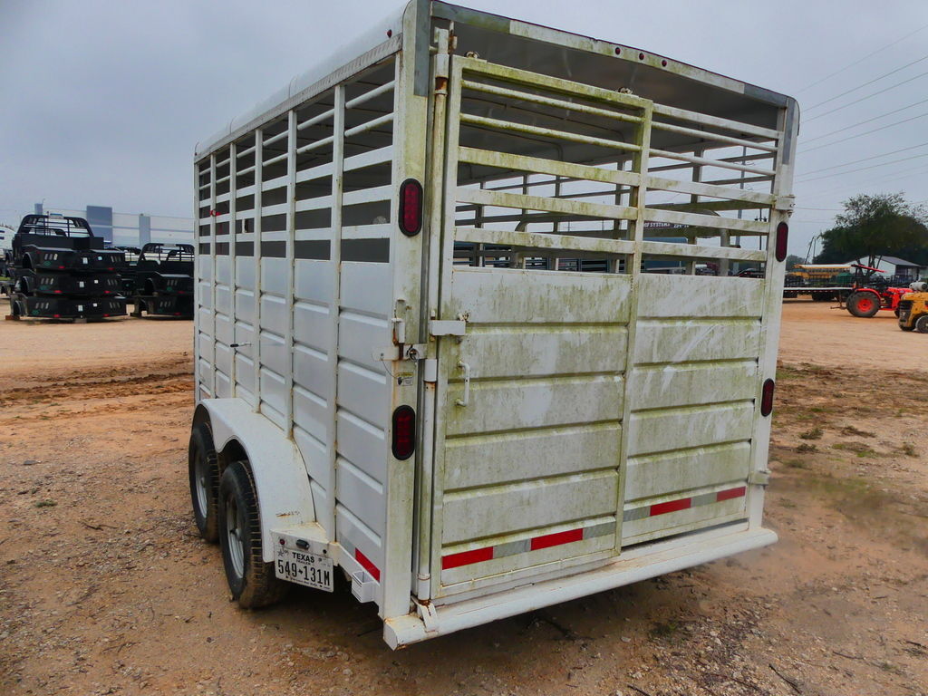G.V.W.R. 12000 lbs.G.A.W.R. 6000 lbs.AXLES Two 6000 lb 4” Drop Spring Axles (1 Idler & 1 with elec. Brakes)SUSPENSION Multi-Leaf Spring with equilizerTIRE ST225/75R15 8 PLY (Spare Tire &Wheel Included)WHEEL 15” White Spoke 5 BoltCOUPLER 2” Bulldog (7,000 lbs.)SAFETY CHAINS Two 5/16” Grd. 70 with safety Latch HookJACK 4,000 lbs. Top Wind (Swing-up)TONGUE 4” Channel Fold Back TongueFRAME 11 Ga. Sheet Metal with Angle Iron ReinforcementCROSSMEMBERS 2-1/2” x 2-1/2” x 1/4” Angle IronSIDE WALL Front 8’ 52” High Sides, Rest 20”Solid Above Fender With TubingTOP Full Metal TopDIVISION GATE 1 Solid GateREAR Swing/Slider GateESCAPE DOOR Side Door (Right Side)FLOOR 2” Treated Pine Lumper DeckLIGHTS D.O.T. Stop, Tail, Turn and Clearance (LED)ELEC. PLUG 7-Way RVFINISH (PREP). Mechanical and/or Chemical Pre-treatment for maximum Paint Adhesion & 1 Coat of PrimerFINISH Painted with two Coats Automotive Quality Acrylic EnamelThe Advertised Prices DO NOT Include: *Licensing* & TaxCall or stop in today to meet with our family of staff members and get yourself a new trailer @LoneStarTrailers!Call us at: 254-749-2624We have over 200 trailers to choose from. Come in and see us at:6610 N I-35 Lacy Lakeview, TX 76705 (exit 342b)Not in the great state of Texas? No Problem! We offer local and nation wide delivery.Store Hours:MON–FRI: 8:00AM-5:00 PMSATURDAY: 9:00AM - 2:00 PMSUNDAY: ClosedRemember we handle all your Trailer Sales & Trailer Part Needs!!! Let us help you with servicing your trailer too! It is our pleasure to serve our community of Waco Texas and all of Central Texas!!