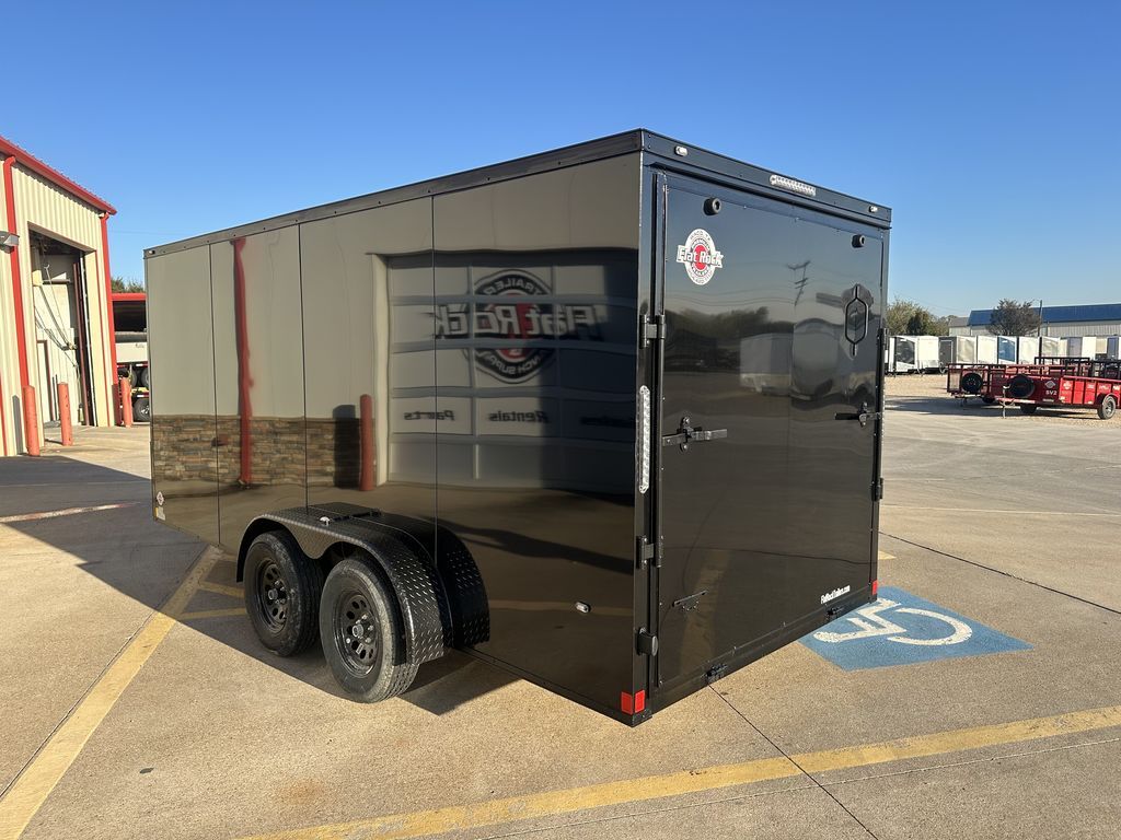 7’ x 16’ CGR 7K Cargo Trailer V Nose 2 x 3,500 lb. EZ Lube Brake Axles Brakes on Both Axles Galvanized Steel Roof Insulated Interior Roof Liner LED Tail Lights 1 Interior Light w/ Switch 2 5/16 in Coupler +/* 6’ 6 in Interior Height .080 Advance Polycore SCREWLESS SIDING ATP Aluminum Fenders 2K Jack ST 205 75 R 15 in Radials Black Mod Wheels Spring Assist Rear Ramp Door 36 in Side Door w/ Cam Bar and RV Locking System 3/4 in Poly Mac Floors 3/8 in Poly Mac Walls on 16 in Centers Flow Through Vent Empty Weight: 2,260 lbs. GVWR: 7,000 lbs. Carrying Capacity: 4,740 lbs.