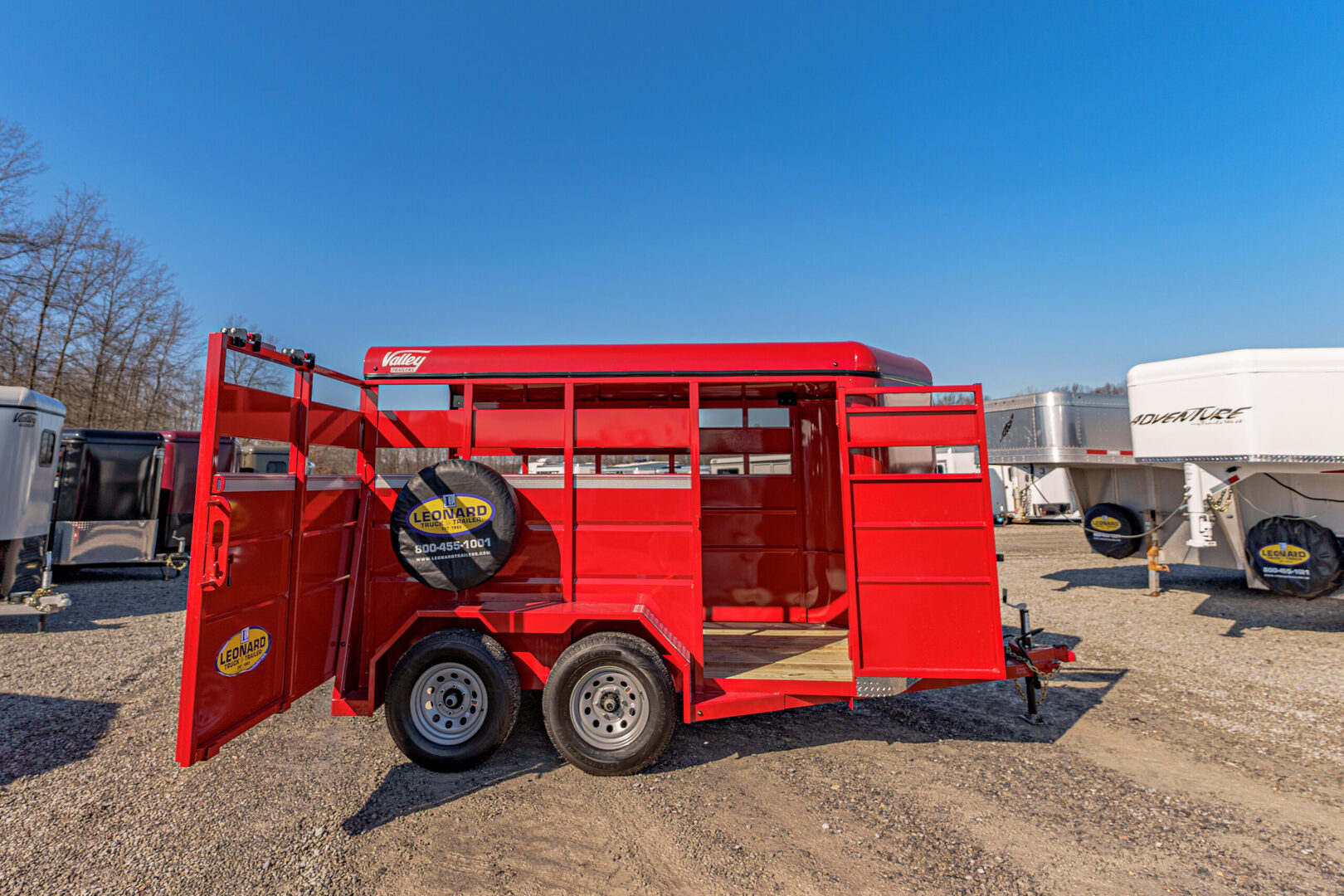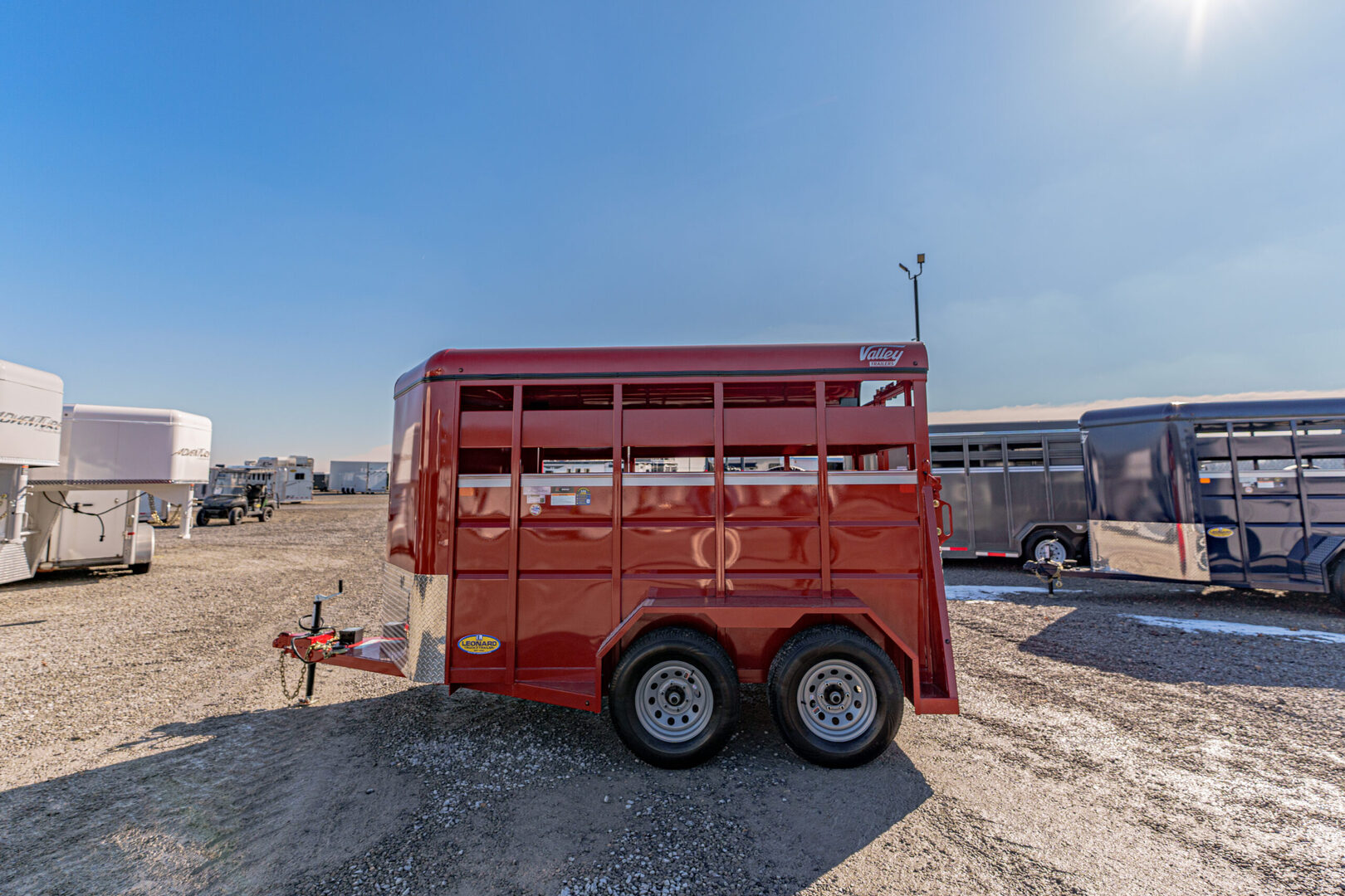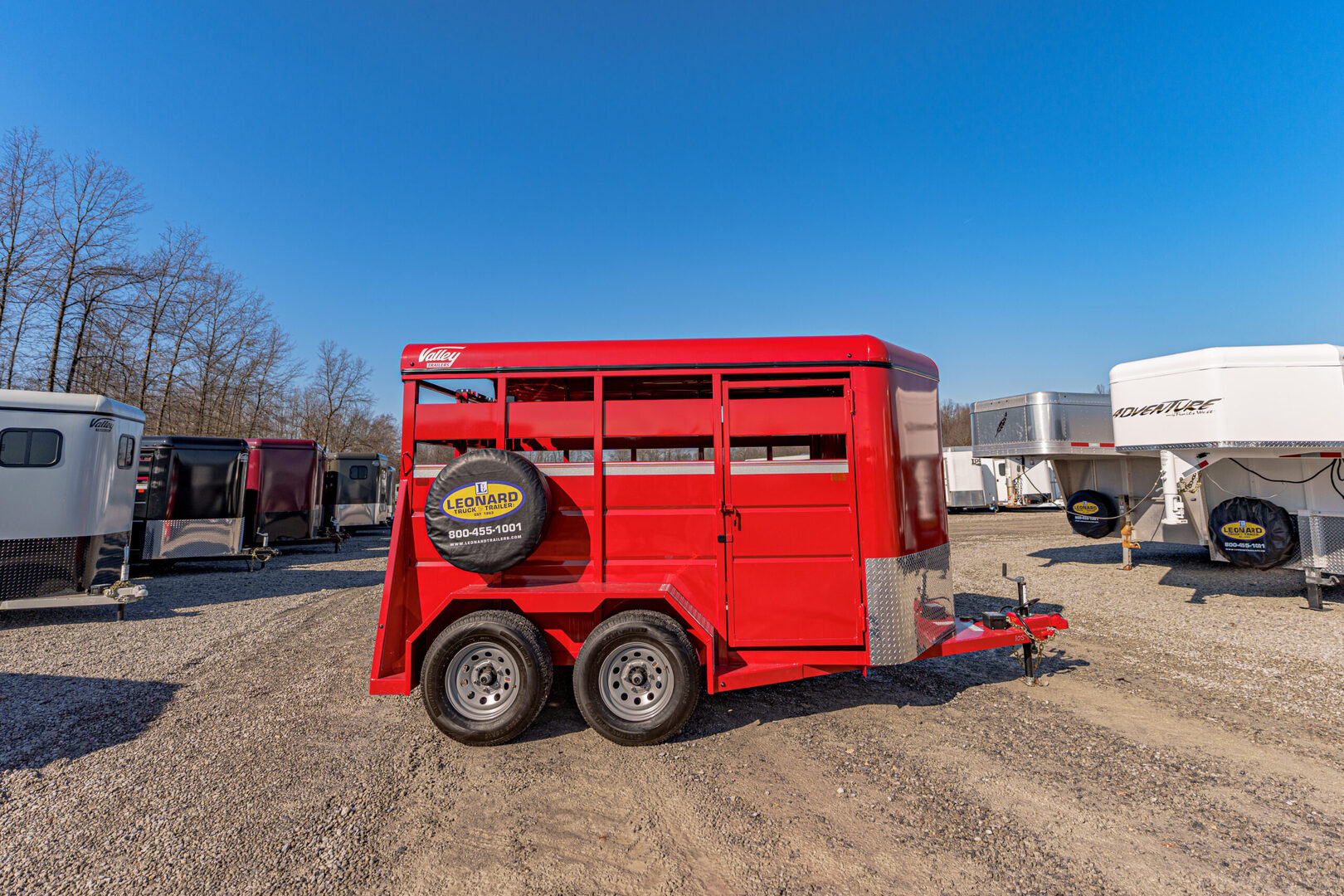 View Inventory: https://leonardtrailers.com/inventory/45355 Stock# 45355 New 2026 Valley 26012 Bumper Pull Stock Trailer Built from the ground up to take on all kinds of abuse from rough roads, terrain, and restless livestock, Valley Trailers provide a high quality livestock trailer at a competitive price. Valley Stock trailers come with safety features installed throughout the the entire trailer; peace of mind for the owner and livestock. With many options and configurations available with the Valley Stock trailers, there are many possibilities. Model:26012 Warranty: 3yr- Structural 1yr-Components Trailer Information: Trailer Model: 26012 Trailer Type: Livestock Hitch Type: Bumper pull Color: Bright Red Width: 6’ Length: 12’ Height: 6’ 6” Coupler: 2-5/16” Ball Axle Size: 3,500 lb Number of Axles: 2 Tire/Wheel Size: 225/75 R15D 6 Hole Mod 655 Standard Features: Slider Gate  Interior light 32” Escape Door Spare tire We offer outstanding financing options, accept trades, and can arrange nationwide NO HASSLE delivery! Inquire today for more information! (888) 333-6613 **We believe these specifications to be accurate. Any discrepancies are unintentional. Please verify information with a sales associate prior to purchase.** Stock Number:45355