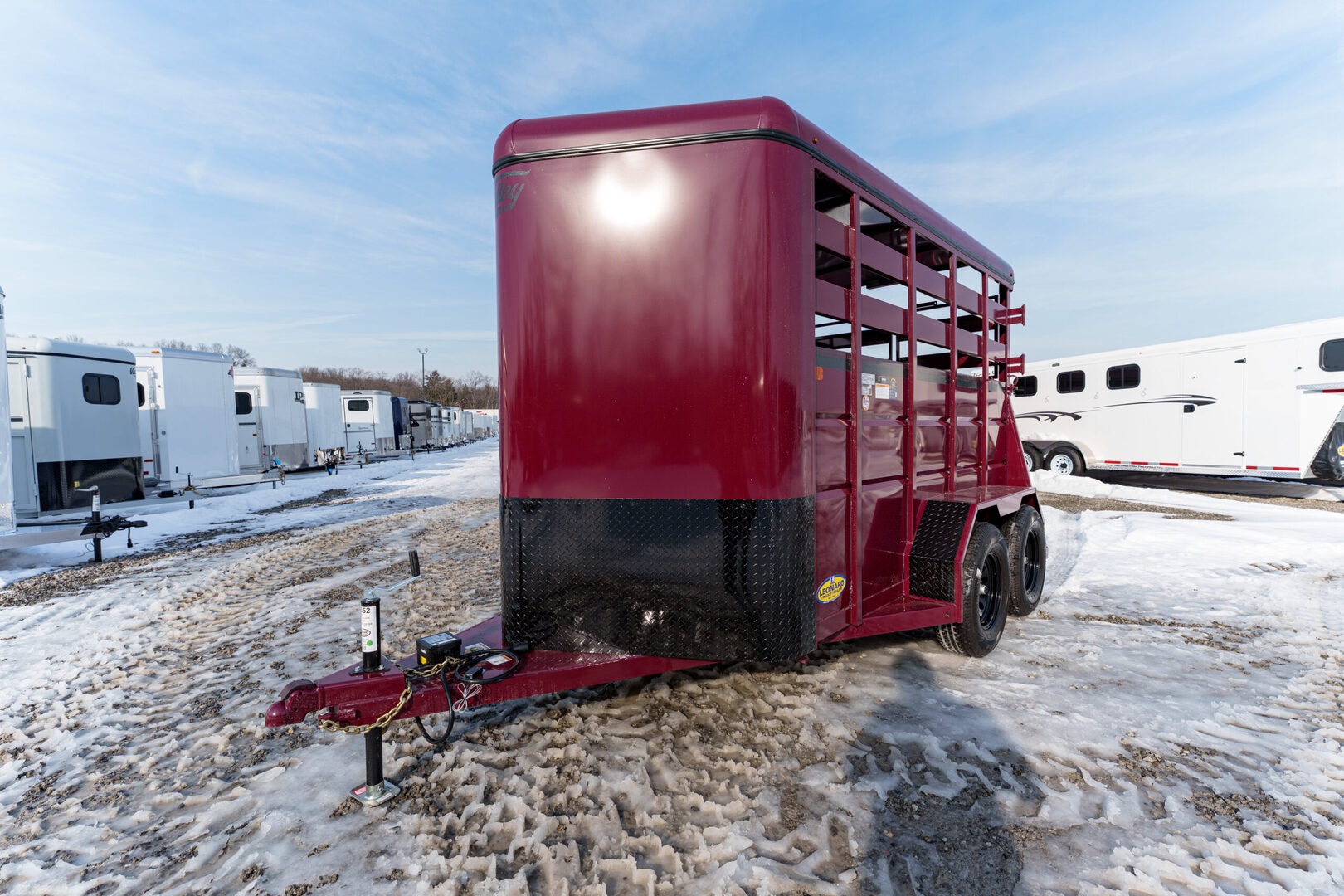 View Inventory: https://leonardtrailers.com/inventory/45352 Stock# 45352 New 2026 Valley 26012SP Bumper Pull Stock Trailer Built from the ground up to take on all kinds of abuse from rough roads, terrain, and restless livestock, Valley Trailers provide a high quality livestock trailer at a competitive price. Valley Stock trailers come with safety features installed throughout the the entire trailer; peace of mind for the owner and livestock. With many options and configurations available with the Valley Stock trailers, there are many possibilities. Model:26012SP Warranty: 3yr- Structural 1yr-Components Trailer Information: Trailer Model: 26012SP Trailer Type: Livestock Hitch Type: Bumper pull Color: Valley Red Width: 6’ Length: 16’ Height: 7’ Coupler: 2-5/16” Ball Axle Size: 3,500 lb Number of Axles: 2 Tire/Wheel Size: 225/75 R15D 6 Hole Mod 655 Standard Features: Slatted double doors Straight divider Interior light Breast & Butt bars Spare tire Ramp We offer outstanding financing options, accept trades, and can arrange nationwide NO HASSLE delivery! Inquire today for more information! (888) 333-6613 **We believe these specifications to be accurate. Any discrepancies are unintentional. Please verify information with a sales associate prior to purchase.** Stock Number:45352