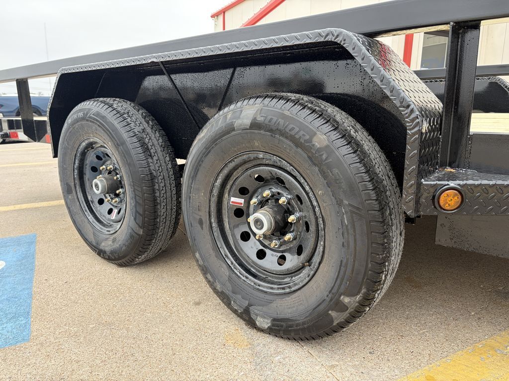 83 in x 20’ 14K Heavy Duty Equipment / Utility 2 x 7,000lb EZ Lube Brake Axles 2 5/16 in Adjustable Bulldog Style Coupler Treated Wood Floor 10K H/D Drop Leg Jack Diamond Plate Fenders ST235 80 R16 Tires and Wheels (Radials) 6 in Channel Wrapped Tongue 6 in Channel Lower Frame 3 in Square Top Rail (Welded Caps) H/D Spare Tire Mount 5’ Rear Slide Out Ramps LED Lights Empty Weight: 3,450lb GVWR: 14,000lb Carrying Capacity: 10,550lb