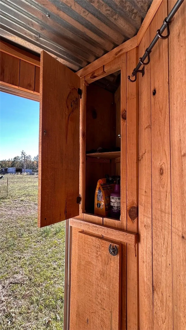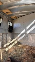 *horse area: rubber mats, kick pads, solid dividers, 2 tie rings per stall, extra interior lights, and pop-up roof vents