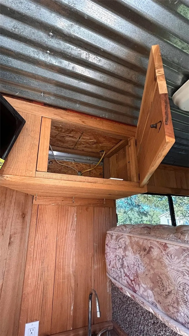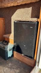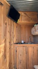 *LQ: rustic cabinets, mini fridge, tv, microwave, sink, storage compartments, and roof ac