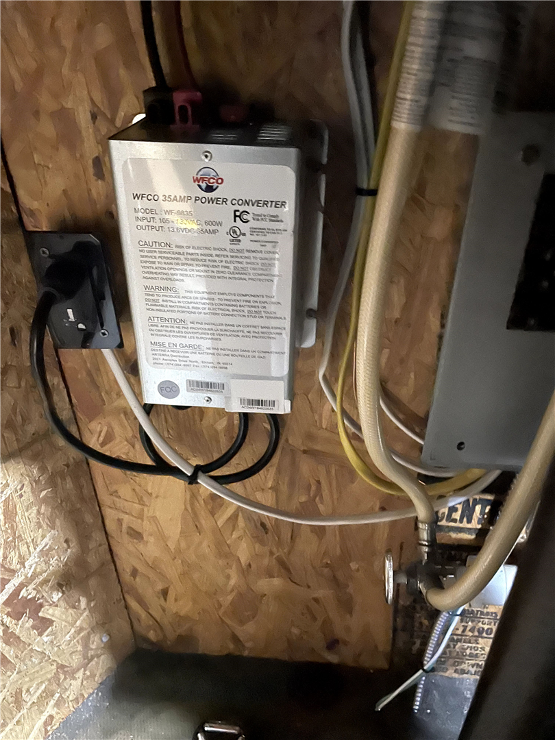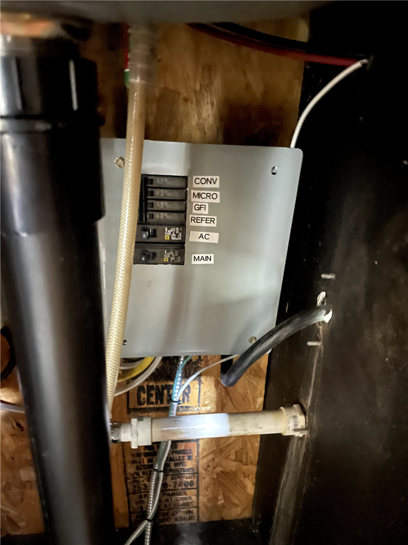 *April 2023- professional upgrades done: all new romex wire run to all the wall plugs and ac, installed gfi plug at the kitchen outlet, replaced all breakers in the breaker box to correct amp for circuits, installed battery tray and battery, installed converter, installed wiring to tow plug to charge battery while towing, plumbed sink to drain to outside wall, sealed roof, and replaced gasket on ac