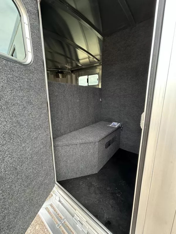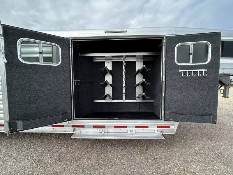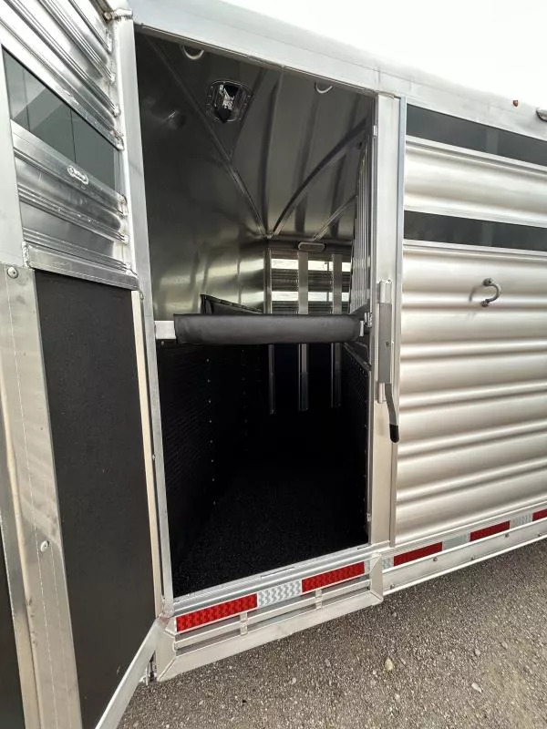 This Platinum Coach 5-horse 8x26 Sport Combo trailer is built strong, easy to use, and ready to haul. The Sport Combo layout gives you plenty of space for horses, tack, and extra equipment. Features: * 8’ wide, 26’ long Sport Combo design * 5 horse stalls with padded dividers * Drop-down windows on the head side * Slider windows on the rump side * WERM flooring - no mats to pull, low maintenance, great traction * Easy-to-clean interior * Large rear opening for simple loading * Sport Combo tack area with saddle racks, bridle hooks, and storage * All-aluminum construction for strength and lighter towing * Clean, durable build that Platinum Coach is known for Great trailer for rodeo, hauling horses and gear, or everyday use. For more information call (512-746-2515)