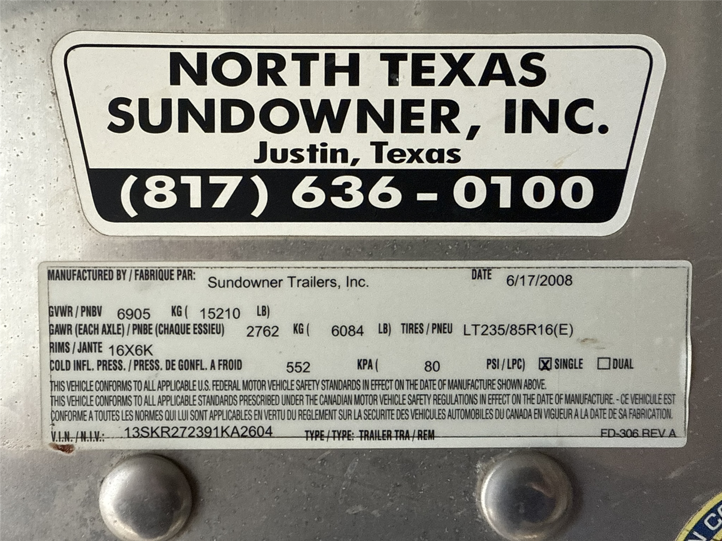 One owner, purchased new. Trailer has been used once a year to pull horses from TX to CO in the spring and back to TX in the fall. Trailer stored out of weather in both TX and CO.