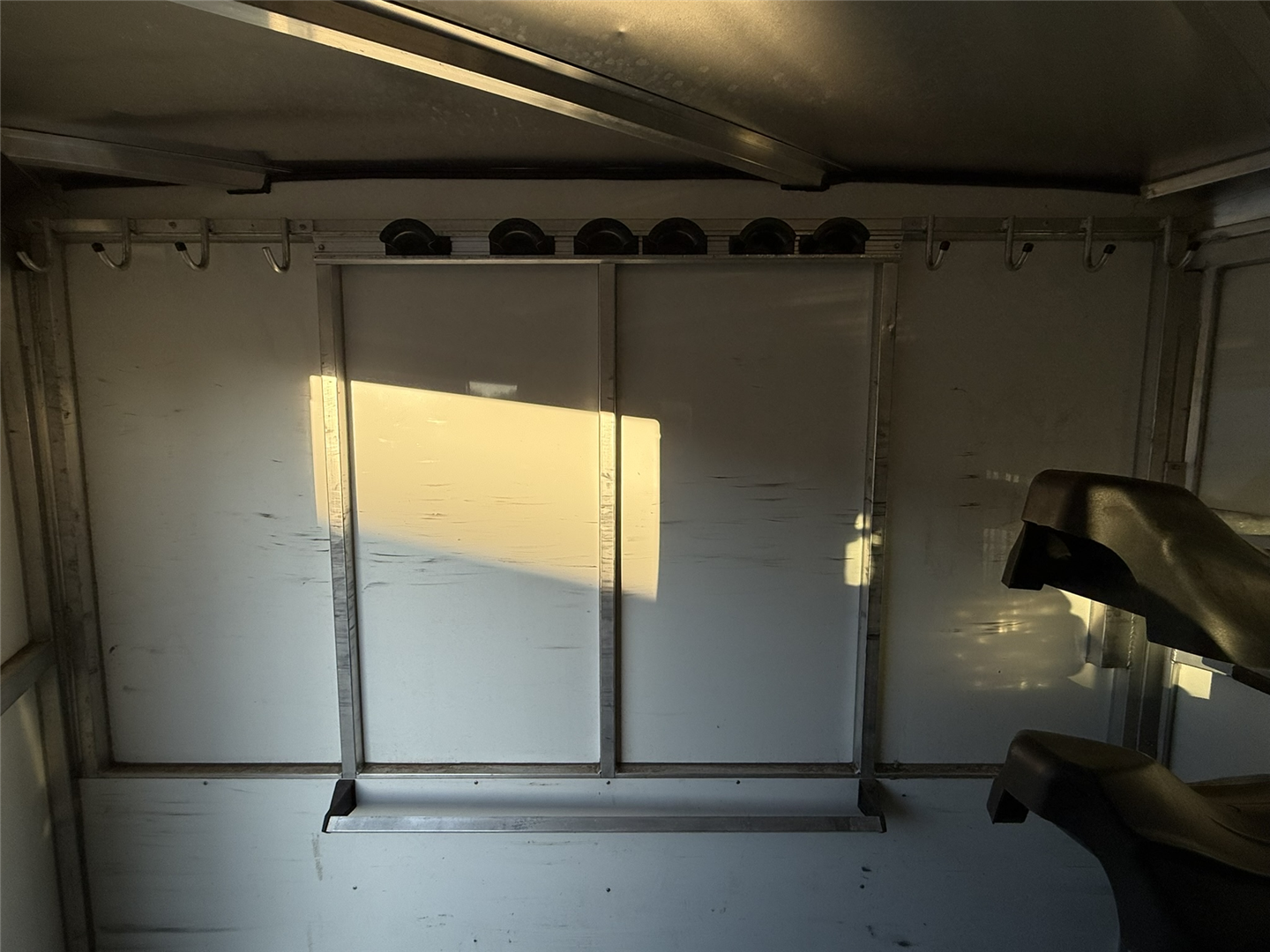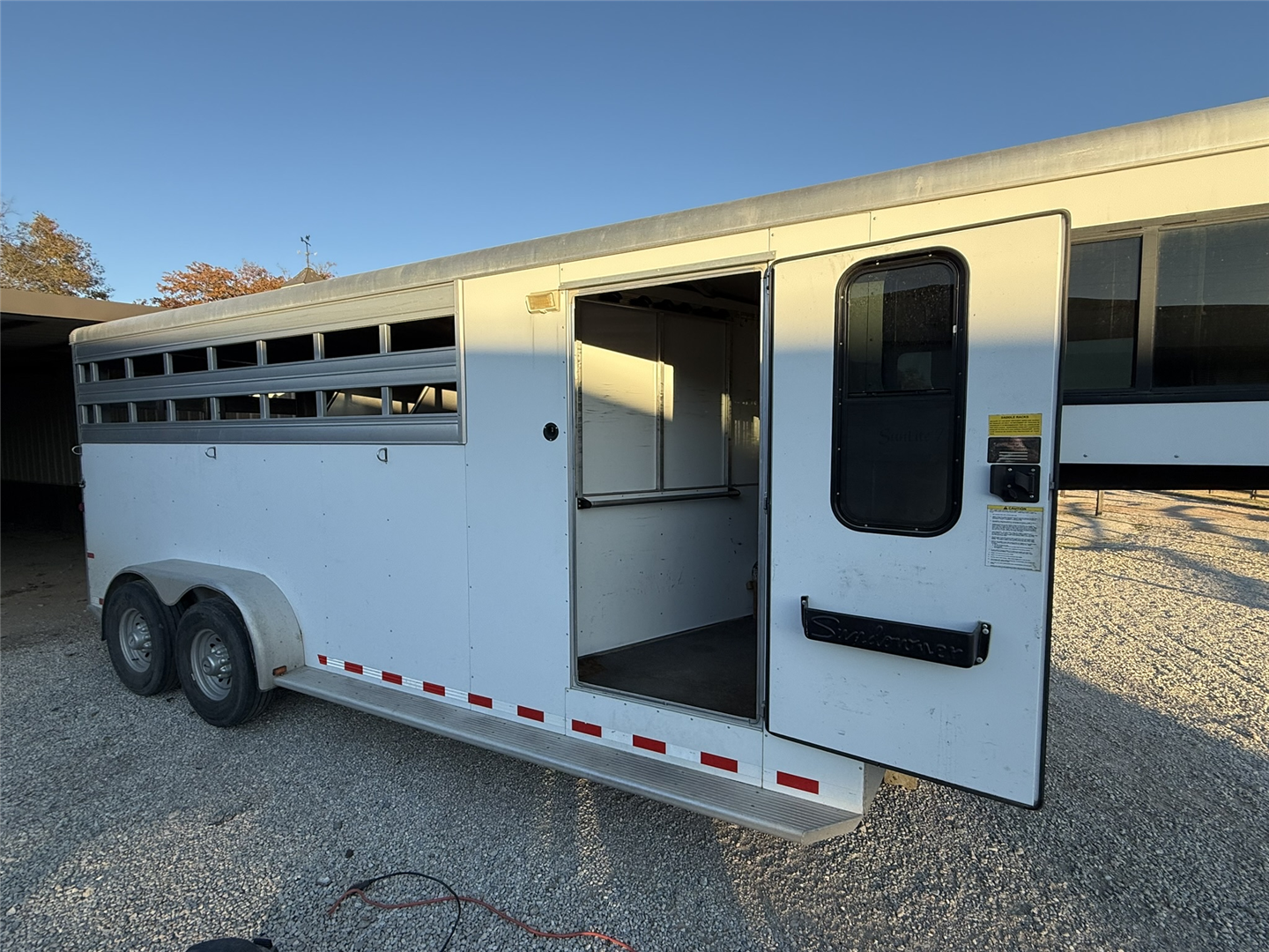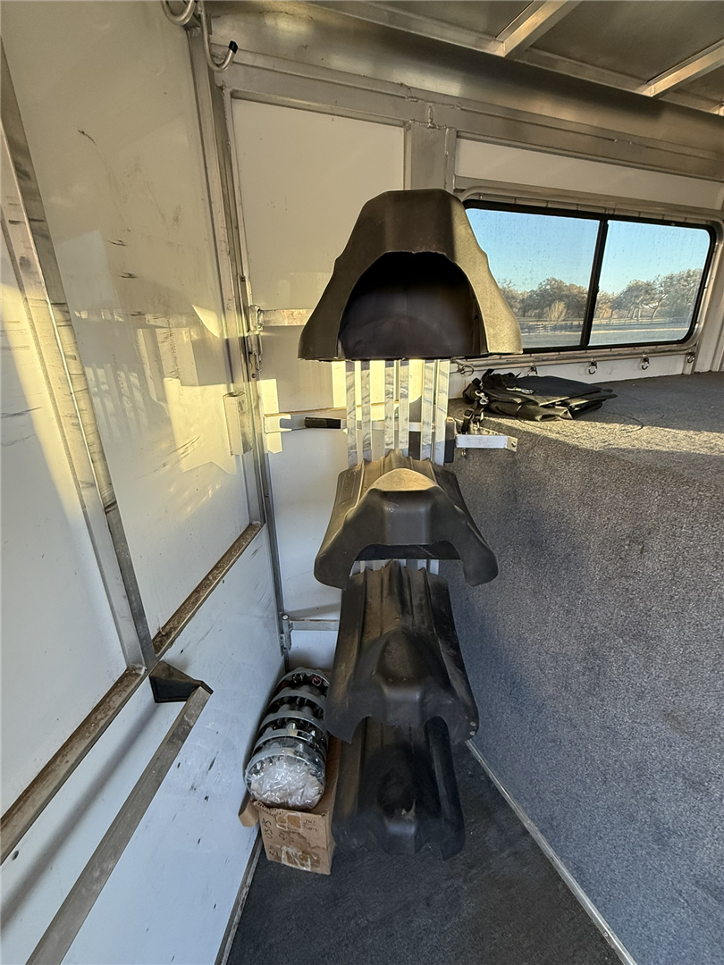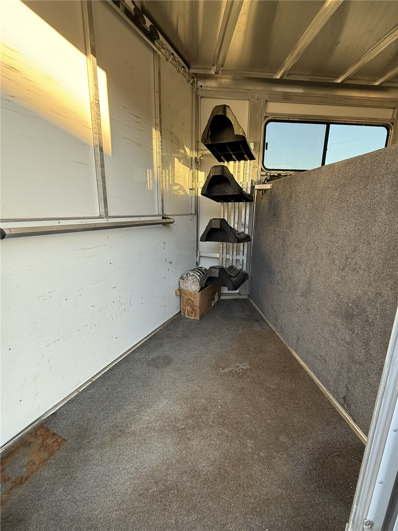 Tack room has hanging hooks, bridle holders, blanket bar, and window screens. Have slide-in plexiglass windows for butt side slats. All LED lights work. Tires replaced May 2016 (approx 16,000 miles). Right rear rubber bumper has slight damage.