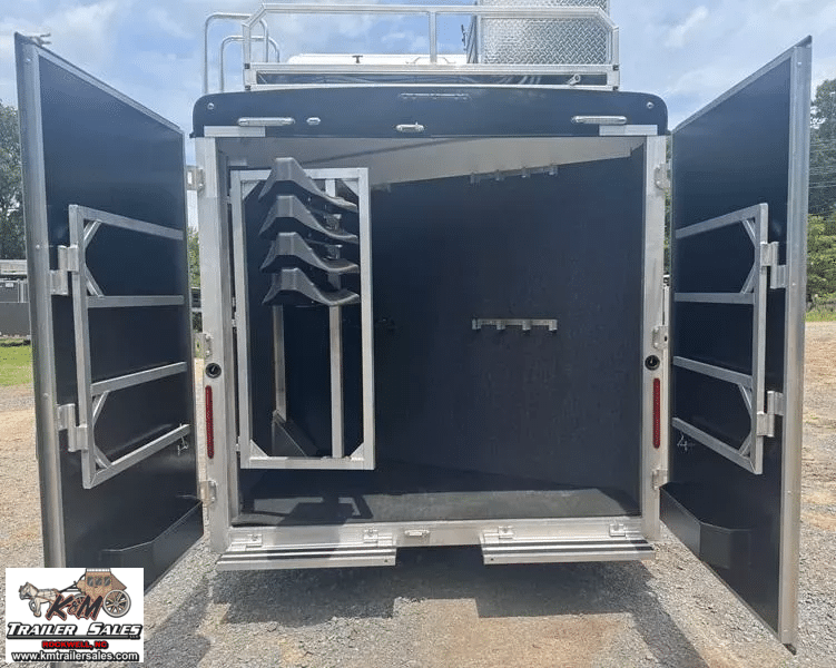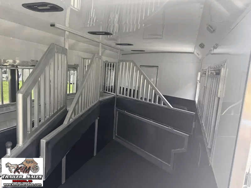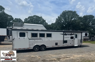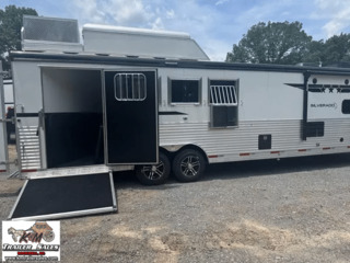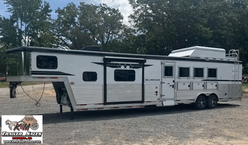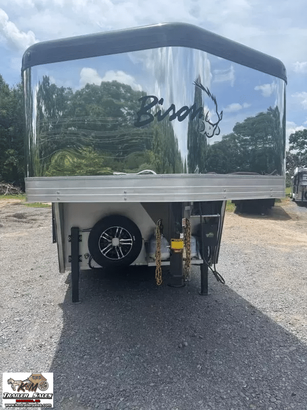 2026 Bison Silverado 4 Horse Side Load – 13′ Living Quarters Ready to Haul in Style, Live in Comfort!   Looking for the perfect blend of luxury, functionality, and horse-friendly design? Check out this brand-new 2026 Bison Silverado – 4-horse side load trailer built for the serious equestrian who won’t compromise on comfort or quality.   Trailer Features:   4 Horse Side Load – Easier, safer loading with individual stalls and rear tack Fully insulated horse area with drop-down windows, vents, fans & padded dividers Spacious Rear Tack with saddle racks, bridle hooks & blanket bars Side ramp for effortless horse access   13′ Living Quarters You’ll Love:   Queen-size bed, sleeper dinette, tons of cabinet space Full kitchen with cooktop, microwave, fridge & stainless sink Private bathroom with full shower, vanity & toilet Ducted heat & A/C, TV, Bluetooth stereo system Power awning with LED lighting – relax outside in style!   Built for the Long Haul:   All-aluminum frame for strength without the weight Dual hydraulic jacks, electric brakes, rubber torsion axles Upgraded tires, spare included, and full LED lighting package Solar-ready & generator prep for off-grid adventures   Whether you’re headed to shows, rodeos, or long hauls across the country, this Bison Silverado gives you top-notch comfort for you and your horses-and looks good doing it.   K&M Trailer Sales LLC 160 Wallace Ln. Rockwell, NC 28138 704-209-3514 kmtrailersales.com   K & M Trailer Sales cannot accept any responsibility or liability for errors, omissions, or manufacturing variations.