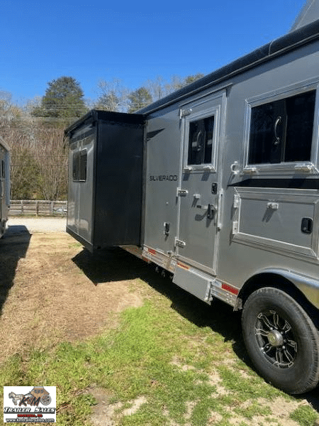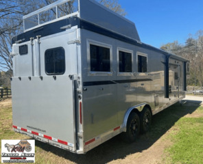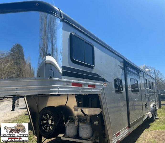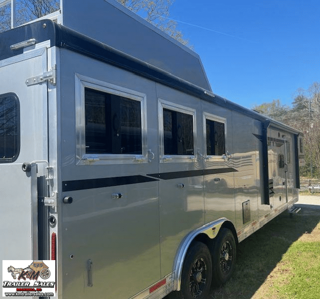 Looking for the perfect trailer to transport your horses safely and comfortably? Look no further! This 2025 Bison 3-Horse Trailer offers premium features and outstanding durability for horse owners who value safety, style, and comfort.   Features:   Three Horse Stalls: Spacious, well-ventilated stalls with high-quality dividers for your horses’ comfort. All-Aluminum Construction: Lightweight yet incredibly durable, ensuring a long-lasting, rust-resistant build. Living Quarters: 13′ Living Quarters & 6′ Slide Out Sofa at riser wall Tack Room: Generous tack room space with ample storage for all your riding gear, saddles, and equipment. Extra Large Horse Area: Designed with ample space for your horses to stand comfortably, reducing stress during travel. Double Rear Doors: For easy access and quick exit, perfect for busy show mornings or trail rides. LED Lights: Bright, energy-efficient lighting throughout for nighttime visibility. Rubber Mats: Floors lined with rubber mats for added comfort and safety during transport. Easily Towable: Lightweight and designed for a smooth tow, perfect for both short trips and long hauls. Stylish Exterior: Sleek, modern exterior design that turns heads wherever you go.   This 2025 Bison 3-Horse Trailer is in excellent condition, ready for the next adventure. Whether you’re hauling to the show ring or heading out for a weekend trail ride, this trailer will ensure your horses travel in comfort and safety. K&M Trailer Sales LLC 160 Wallace Ln. Rockwell, NC 28138 704-209-3514 info@kmtrailersales.com www.kmtrailersales.com   K & M Trailer Sales cannot accept any responsibility or liability for errors, omissions, or manufacturing variations.