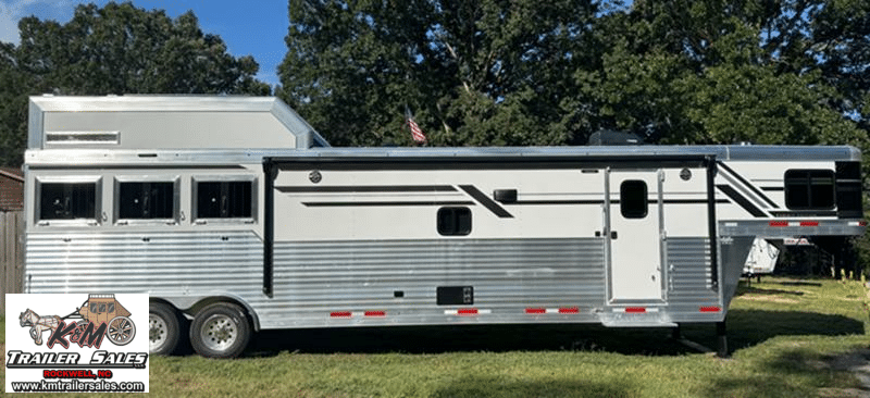 Unmatched Quality & Comfort- The 2026 SMC 3-Horse Trailer You’ve Been Waiting For!! Elevate your equestrian journeys with this New 2026 SMC 3-Horse Gooseneck Trailer, expertly crafted to deliver robust performance and luxurious comfort.   Horse Area – Built for Safety & Convenience   Rugged aluminum construction, dual 8,000 lb axles, and electric brakes ensure strength and reliability. Spacious slant-load configuration with drop-down windows on both head and tail for exceptional airflow. Features include mangers, hay pod, escape door, air-flow dividers, and stud divider for ultimate animal safety. Aluminum flooring with mats offers easy upkeep and durability. Onan 4000 gas generator   Living Quarters- Travel in Style   Thoughtful layout includes a rear kitchen and a comfortable sofa/dinette. Equipped with A/C, furnace, Onan4.0 generator, a 6.0 cu ft fridge, recessed glass cooktop, and convection oven. Enjoy daily convenience with a neo-angle shower, a 10-gallon gas/electric water heater, and ample storage. Outdoor-ready with electric slide-out, power awning, and a mounted TV plus a comfortable mattress to rest on.   Additional Features & Build   Gooseneck hitch for seamless towing and stability. Solid aluminum build with high-end craftsmanship synonymous with SMC trailers.     Interested? Let’s Connect   Contact us today to schedule a private tour or request a full spec sheet. Financing options available. Trades and deliveries can be arranged.   Drive away with luxury, comfort, and unmatched peace of mind. This 2026 SMC 4-Horse trailer is ready to go the distance. K&M Trailer Sales LLC 160 Wallace Ln. Rockwell, NC 28138 704-209-3514 info@kmtrailersales.com www.kmtrailersales.com   K & M Trailer Sales cannot accept any responsibility or liability for errors, omissions, or manufacturing variations.