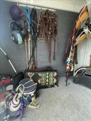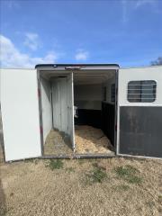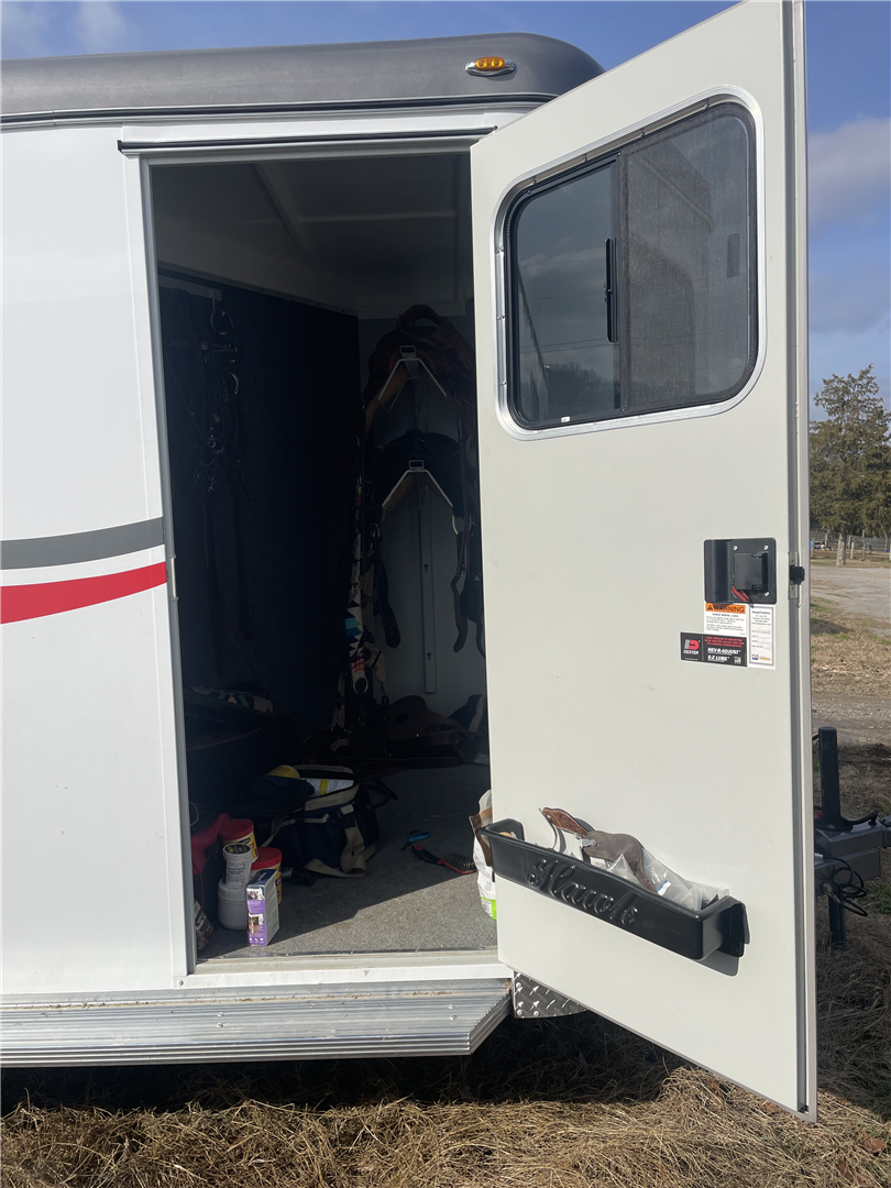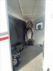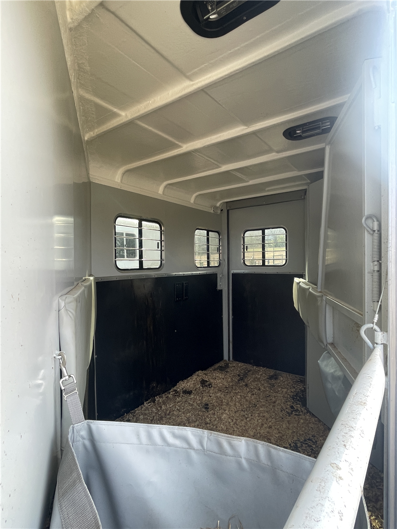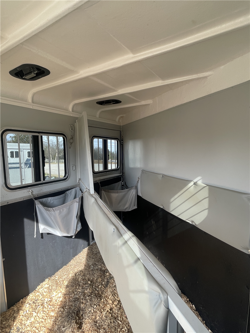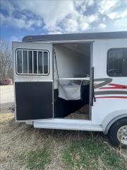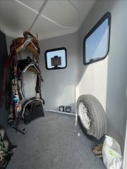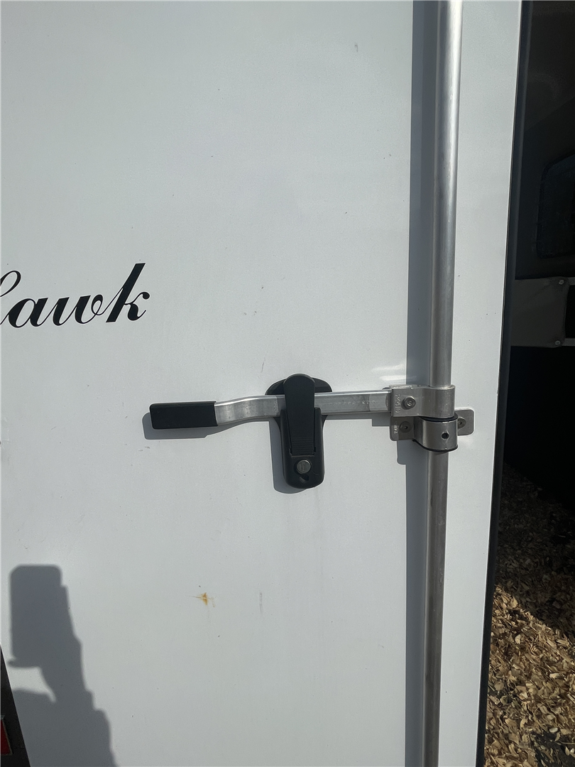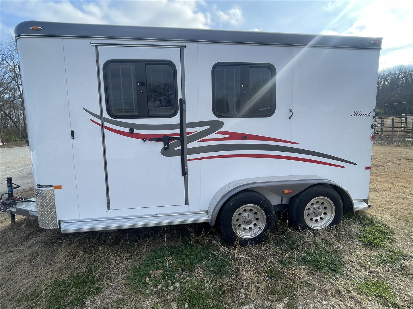 2024 Hawk 2 Horse Slant Elite with Dressing Room 7'4" Tall 80" Wide 15' Long 3,500# Axles Empty Weight of 3,560# Electric Brakes 15" Tires Spare Tire 1' Added to the Dressing Room Additional Saddle Post in Dressing Room Carpeted Dressing Room Bridle Hooks Brush Tray Full Length Aluminum Running Boards Aluminum Wheels LED Lights Additional Load Lights Feed Bags Divider Pads Roof Vents Escape Door Drop Down Windows on Head Side Slider Windows on Hip Side 1-Piece Fiberglass Roof