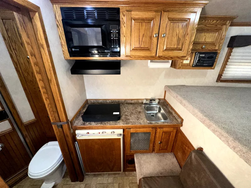 Kitchen Features - stainless steel sink, 2-burner cooktop, microwave, vent hood w/ light & fan, 3 cubic foot minifridge, 110 outlets.
