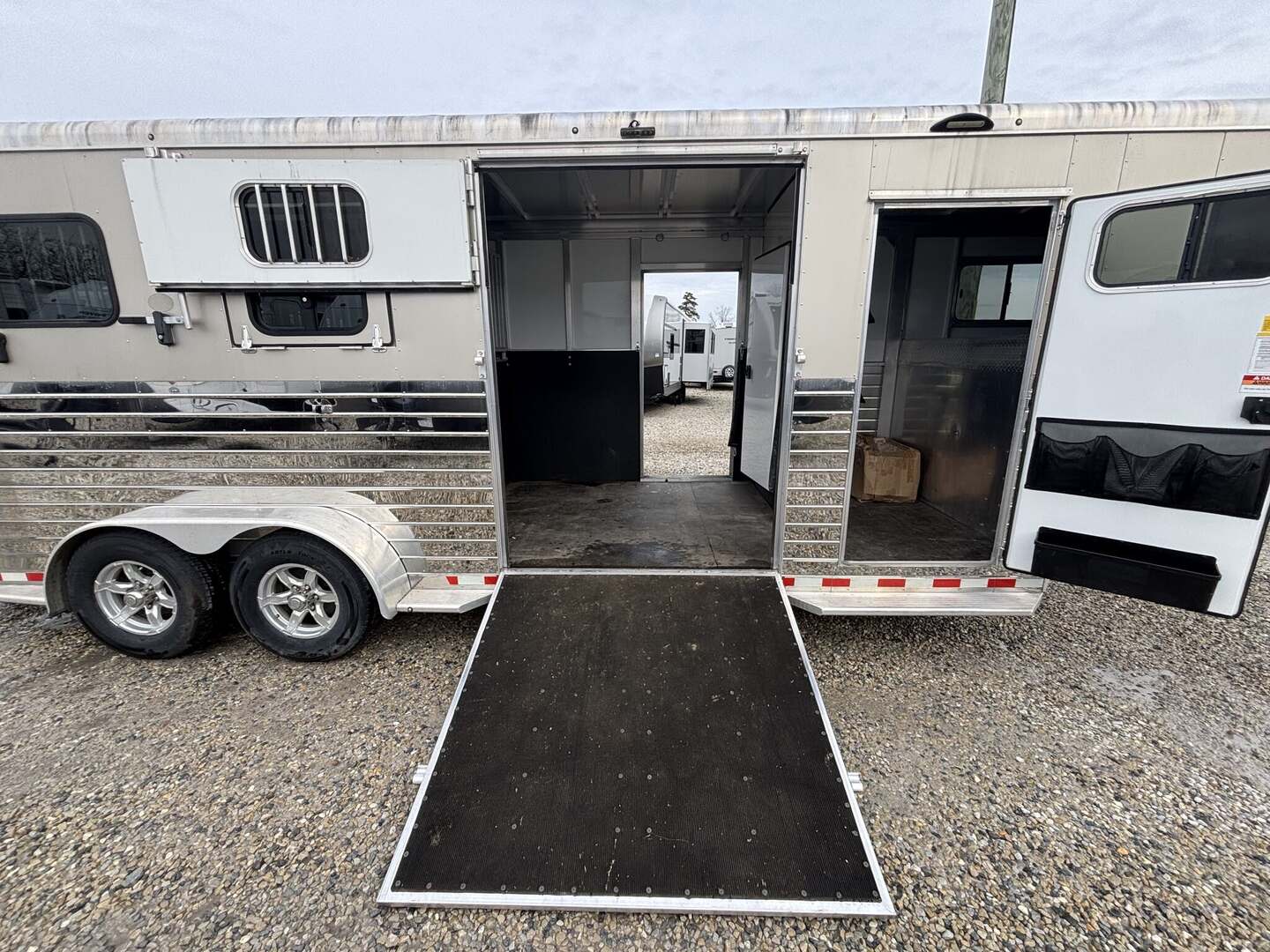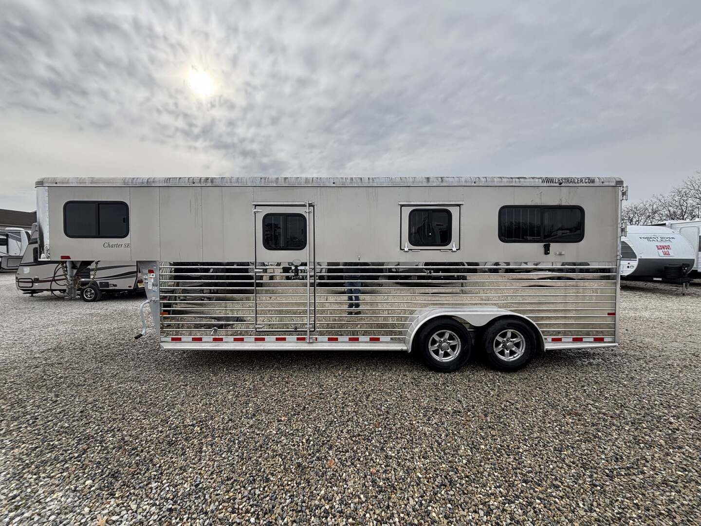2019 Sundowner Charter SE 2+1 Gooseneck Horse Trailer The 2019 Sundowner Charter SE 2+1 Gooseneck is a premium straight-load horse trailer designed for safety, comfort, and versatility. Built with Sundowner’s legendary all-aluminum construction, this trailer is lightweight, durable, and engineered to haul smoothly in all conditions. The popular 2+1 layout features two large rear straight-load stalls plus a spacious front box stall, giving you the flexibility to haul a third horse or use the space for tack, gear, feed, or grooming equipment. This Charter SE includes upgraded Special Edition features such as enhanced padding, high-quality windows, superior ventilation, and a clean, bright interior your horses will appreciate. With both a rear ramp and a side ramp, loading and unloading is simple and stress-free. Key Features 2+1 Straight-Load Design – Two rear stalls plus a roomy front box stall All-Aluminum Build – Lightweight, rust-free, and built to last Gooseneck Configuration – Provides excellent stability and extra storage/tack space Rear Ramp + Side Ramp – Easy loading from multiple angles Upgraded SE Package – Enhanced interior padding, hardware, and finish Drop-Down Windows – Superior airflow and visibility for horses Padded Dividers & Chest Bars – Comfort and safety on every haul Rubber Floor Mats & Wall Padding – Reduces noise and vibration Spacious Dressing/Tack Area – Perfect for saddles, bridles, show gear, and storage Why Buyers Love the 2+1 Layout Great for trainers and show riders Ideal for hauling one, two, or three horses Extra room for tack trunks, hay, equipment, or grooming gear Horses load and unload with less stress due to open space and ramp options