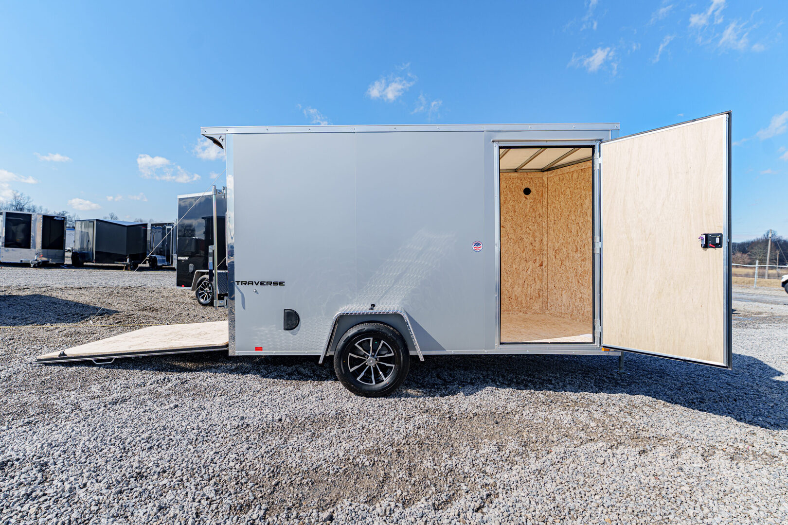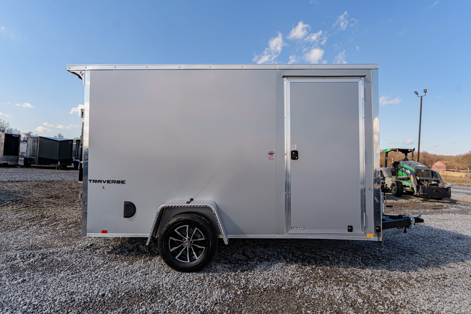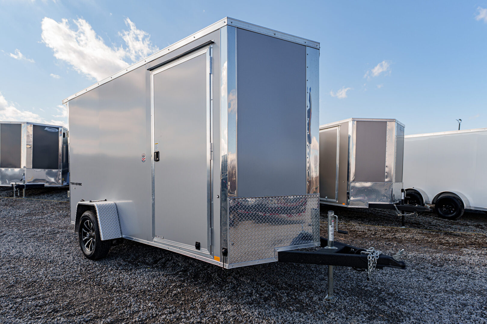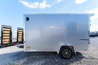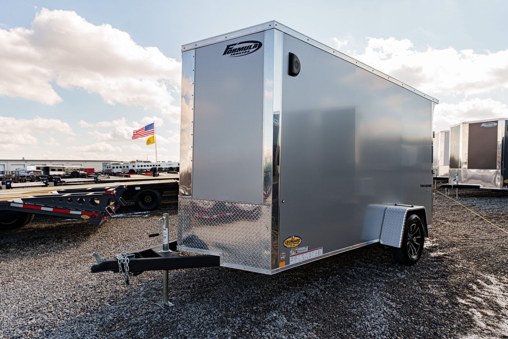 View Inventory: https://leonardtrailers.com/inventory/45394 Stock #45394 – New 2026 Formula Trailers 6 x 12 Traverse Flat Top V-Nose Enclosed Trailer (3K GVW) – Composite Silver Standard Features 16” V-Nose Front 4” x 2” Steel Tube Tongue 2” A-Frame Coupler DOT Compliant Safety Chains 2K Coupler-Mounted Tongue Jack Formed Steel Crossmembers (Upgraded to 16” On-Center) Steel Tube Wall Studs & Roof Bows (Upgraded to 16” On-Center) 3/4” Engineered Wood Floor Engineered Wood Interior Walls & Trim Lauan Strip Ceiling 36” Wide Flush Lock Side Door with Holdback 1,500 lb Rear Ramp Door with Assist Sidewall Airflow Vents Full LED Exterior Lighting (DOT Compliant) (1) Interior LED Dome Light with Wall Switch Flat 4-Pin Connector 24” ATP Stone Guard Seamless Aluminum Flat Roof .030 Aluminum Exterior Limited 3-Year Warranty Running Gear 3,500 lb Drop Spring Idler Axle Easy Lube Hubs ST205/75R15C 6-Ply Tires Black Aluminum Wheel Upgrade Added Options & Upgrades Rear Flare with (2) LED Loading Lights & Rear Switch Setback Jack Upgrade (2K) Light Lid Translucent Roof Semi-Screwless Sidewalls Polyethylene Vapor Barrier & Undercoating Composite Silver Exterior Interior Height: 78” Interior Width: 69” Rear Opening: 74” H x 65.5” W We offer outstanding financing options and can arrange nationwide NO HASSLE delivery. Inquire today at (888) 333-6613. We believe these specifications to be accurate. Any discrepancies are unintentional. Please verify all information with a sales associate prior to purchase. Stock Number:45394