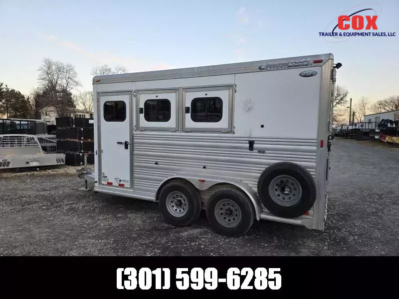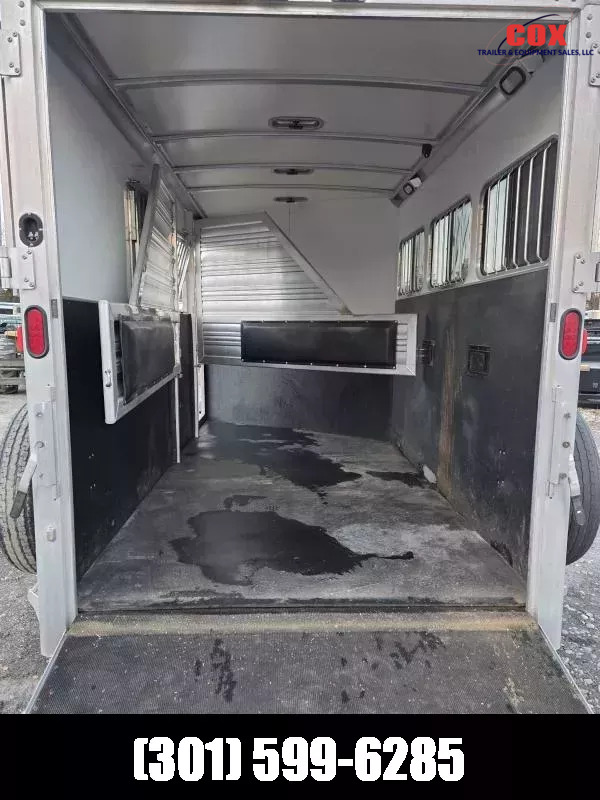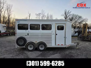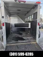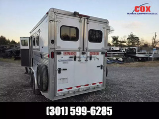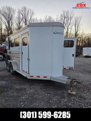 This is a nice solid 3-horse bp built with Cimarron care and comminent to the horse industry , trailer is full y serviced in our shop , has insulated roof panel , escape door at first stall and a full width rear ramp , rubber floor mats , insulated horse area , saddle racks and bridle hooks as well as 2 spare tires call or come buy Cox Trailer Sales Today 301-599-6285 financing and delivery available w.a.c.
