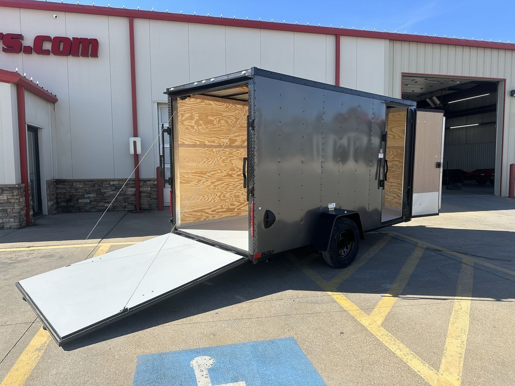 6’ x 14’ Single Axle Cargo Trailer Elite V Nose 3,500 lb. Dexter EZ Lube 4 in Drop Axle EV Sports Package Intergraded Hitch Design 3/8 in Plywood Lined Walls Rear Stabilizer Jacks ATP Corner Post Cover 2 in Coupler 32 in Side Door 205 75 R15 in Radials on Black Mod Wheels w/ Caps 2K Jack 16 in ATP Front Stone Guard Smooth Aluminum Fenders (Jeep Style) 6’ 6 in Interior Height Spring Assist Ramp Door Gray Painted 3/4 in Plywood Floors 3/8 in Plywood Walls Empty Weight: 1,390 lbs. GVWR: 2,990 lbs. Carrying Capacity: 1,600 lbs.