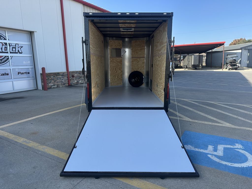 6’ x 12’ Single Axle Cargo Trailer Spare Tire Mount w/ Spare Tire Elite V Nose 3,500 lb. Dexter EZ Lube 4 in Drop Idler Axle Intergraded Hitch Design 3/8 in Plywood LIned Walls Rear Stabilizer Jacks ATP Corner Post Cover Polished ATP Rear Wrap 2 in Coupler 32 in Side Door 205 75 R 15 in Radials on Black Mod Wheels w/ Caps 2K Jack 16 in ATP Front Stone Guard Aluminum Fenders (Jeep Style) 6’ 6 in Interior Height Spring Assist Rear Ramp Door Gray Painted 3/4 in Plywood Floors Non Power Roof Vent Empty Weight: 1,290 lbs. GVWR: 2,990 lbs. Carrying Capacity: 1,700 lbs.