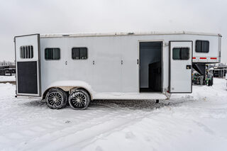 View Inventory: https://leonardtrailers.com/inventory/45414 Used 2025 Kiefer SS300 Gooseneck Horse Trailer Fresh Trade! This SS300 Kiefer has the following: -7’ X 19’ -Dressing Room: 4’5” SSlant -Horse Area: Mats, Pads, and Completely Lined With Rubber  -Escape Type: Full Walk Out -Tack Area: Rear Collapsible  -Axles: 7000# Rubber Ride  -Tires:16” -Brakes: Electric -Jack: Single-Hydraulic Please call us for any additional information! **We believe that these specifications to be accurate. Any discrepancies are unintentional. Please verify information with a sales associate prior to purchase.** Stock Number:45414