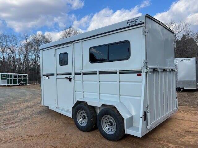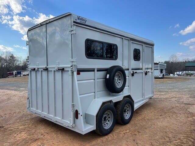 2026 Valley 2H BP Thoroughbred Trailer w/5’6” Dress, 7’6”x6’8”, 10’6” in HA, Silver, Rear Ramp w/Curtain Doors, 2 Escape Doors w/Windows, Remote Dome Switches, Pressure Treated Wood Floor w/Mats, Removable Partition, Wood Lined, Windows in V-Nose, Window in Dress Wall, 2 Saddle Racks, Bridle Hooks, Brush Box, Inside Ties, Stone Guard on Front and Fenders, Spare Tire, GVWR 7000, Empty 4160, Carry 2840
