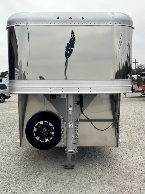 Other Features - center leg landing gear, additional clearance lights, 2 LED side tack lights, 1 rear LED load light, rear rubber bumper, black aluminum 8 lug wheels, spare tire w/ matching wheel, 235/85R16 tires, 7,000lb rubber torsion axles w/ electric brakes, 2 5/16 adjustable coupler, stainless steel nose, 12 exterior tie rings, full length aluminum running boards, double rear doors.