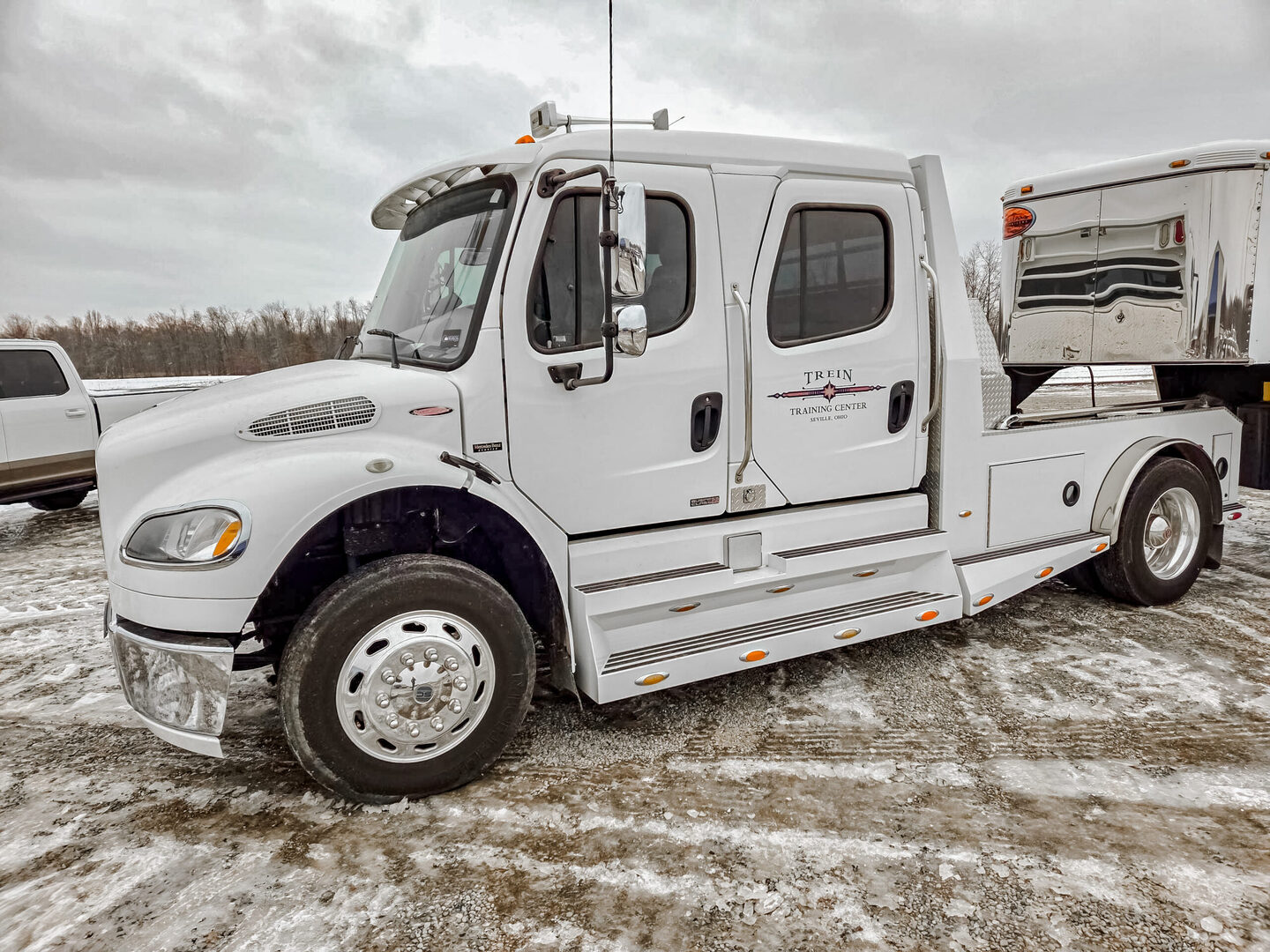 View Inventory: https://leonardtrailers.com/inventory/45419 Stock #45419 – Used 2007 Freightliner Sport Chassis M2 106 – Crew Cab | 350 HP Mercedes Diesel | 176,861 Miles This Used 2007 Freightliner Sport Chassis M2 106 has 176,861 miles and is a well-equipped, heavy-duty crew cab truck designed for serious towing and long-distance comfort. It is powered by a 350-horsepower Mercedes-Benz diesel engine, delivering strong, reliable performance, and is configured with two-wheel drive and a single rear axle—ideal for hauling trailers, RVs, or equipment. Inside, the truck features a brown leather interior with seating for five passengers. Comfort and convenience highlights include air conditioning, tilt steering wheel, cruise control, power driver seat, power windows, power door locks, power mirrors, power steering, and a center arm rest. Safety and utility features include dual air bags and a trip odometer, while entertainment and communication are handled by an AM/FM radio and CB radio. On the exterior, this Sport Chassis rides on aluminum wheels and is equipped with fog lights for improved visibility. It is fully set up for towing with a brake controller, gooseneck hitch, and bumper hitch, making it a versatile and capable platform for work or recreational hauling. This vehicle is being offered as-equipped and represents a strong value for buyers seeking a proven, heavy-duty sport chassis truck with dependable Mercedes diesel power. We offer outstanding financing options, accept trades, and can arrange nationwide NO HASSLE delivery! Inquire today at (888) 333-6613. We believe these specifications to be accurate. Any discrepancies are unintentional. Please verify all information with a sales associate prior to purchase. Stock Number:45419