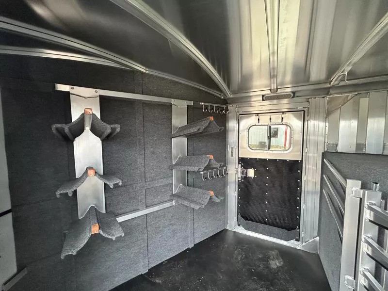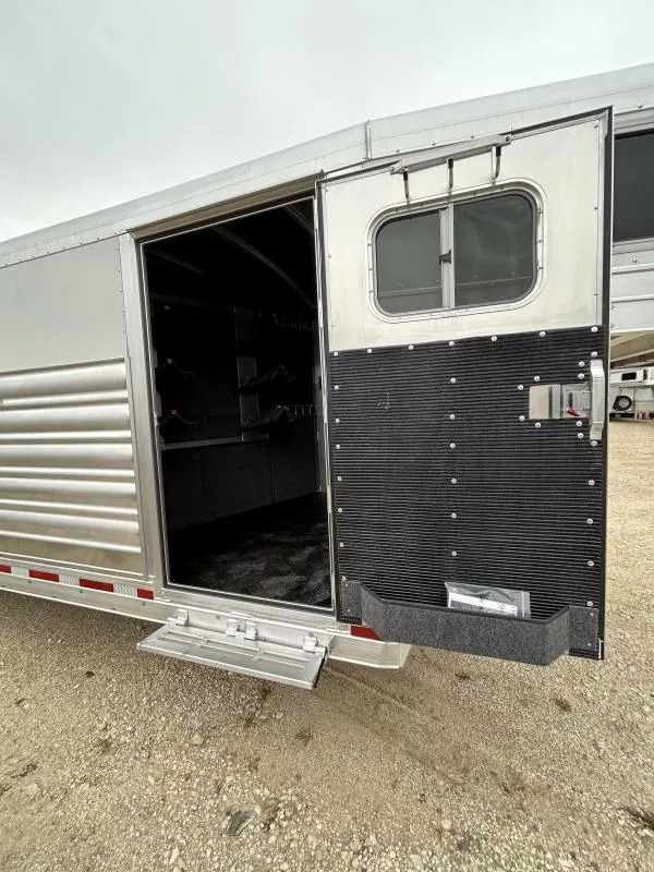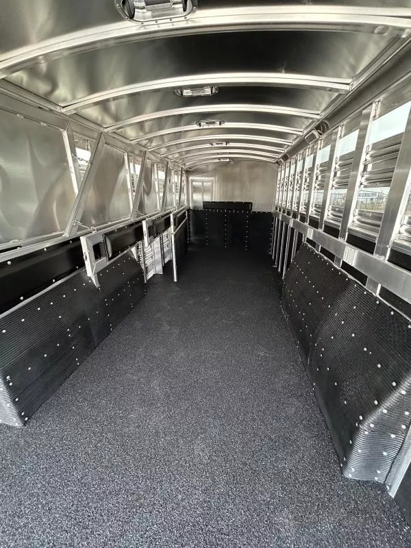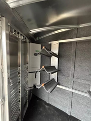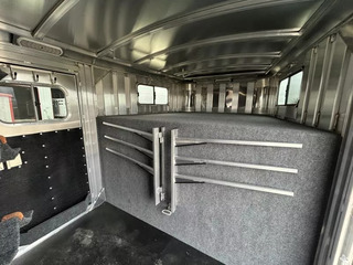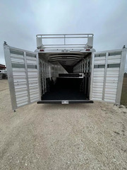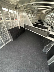 * 8’ wide x 28’ long x 7’ tall * 7,000 lb. axles * Sport Combo layout * Glued 48” stall mats * Water tank in tack area * Clothes rod in tack area * Two dressing room doors, accessible from both sides * 6’ hayrack with ladder * Heavy-duty construction * Please call (512-746-2515) for more information