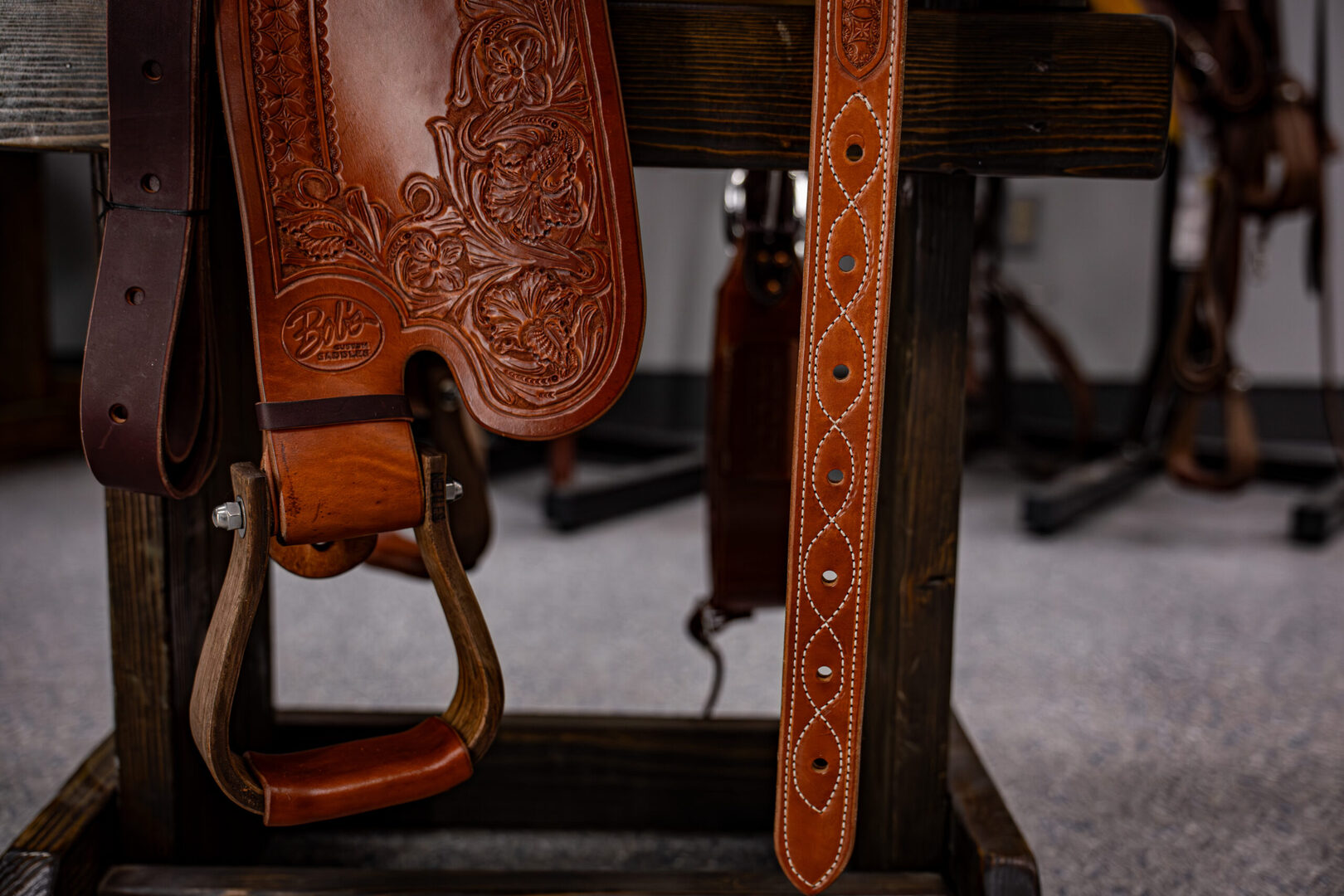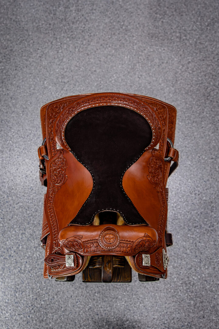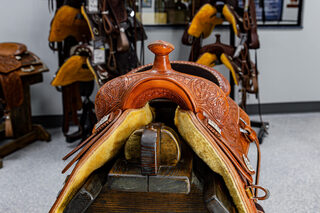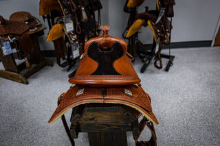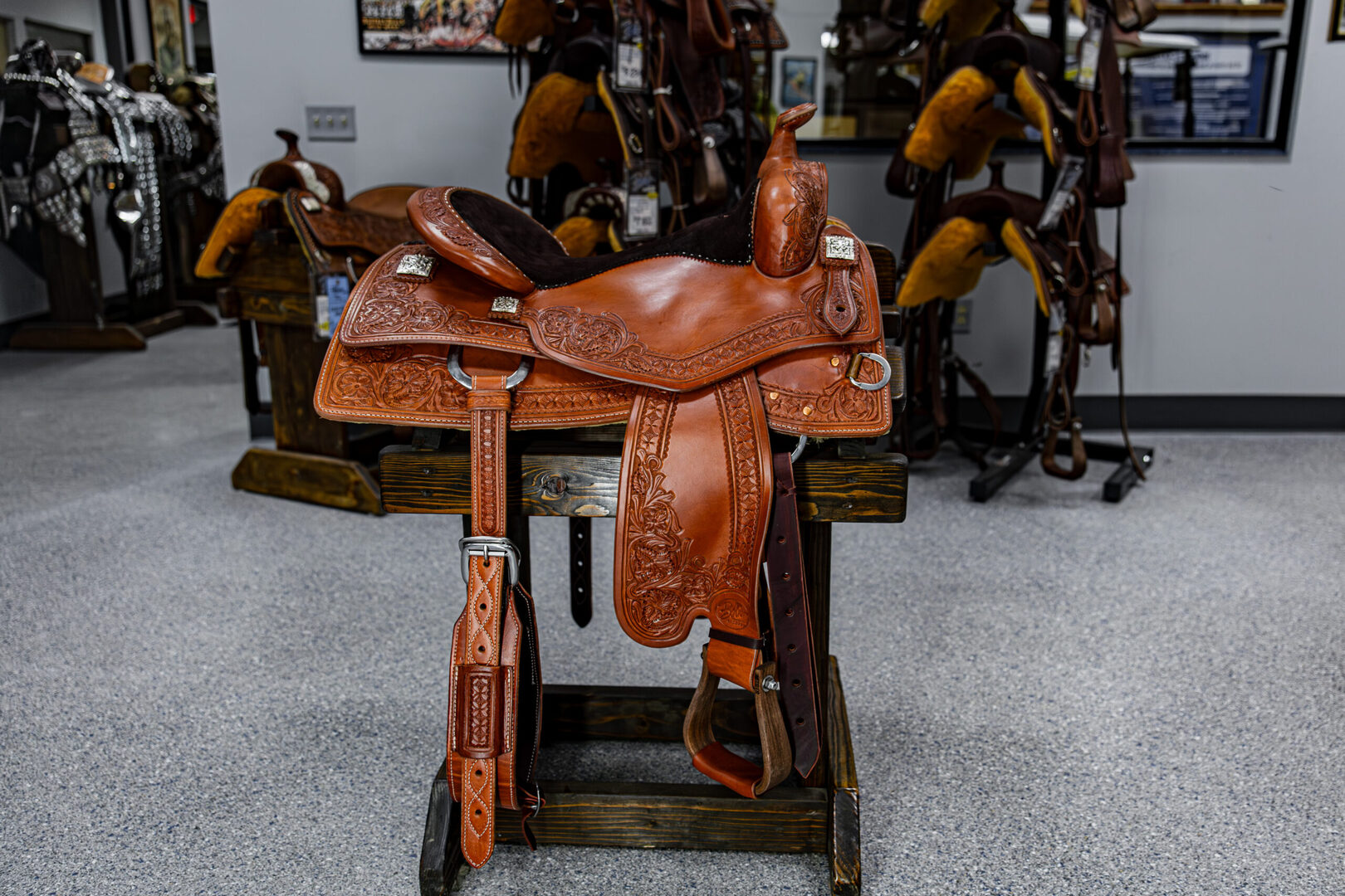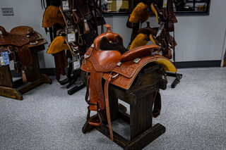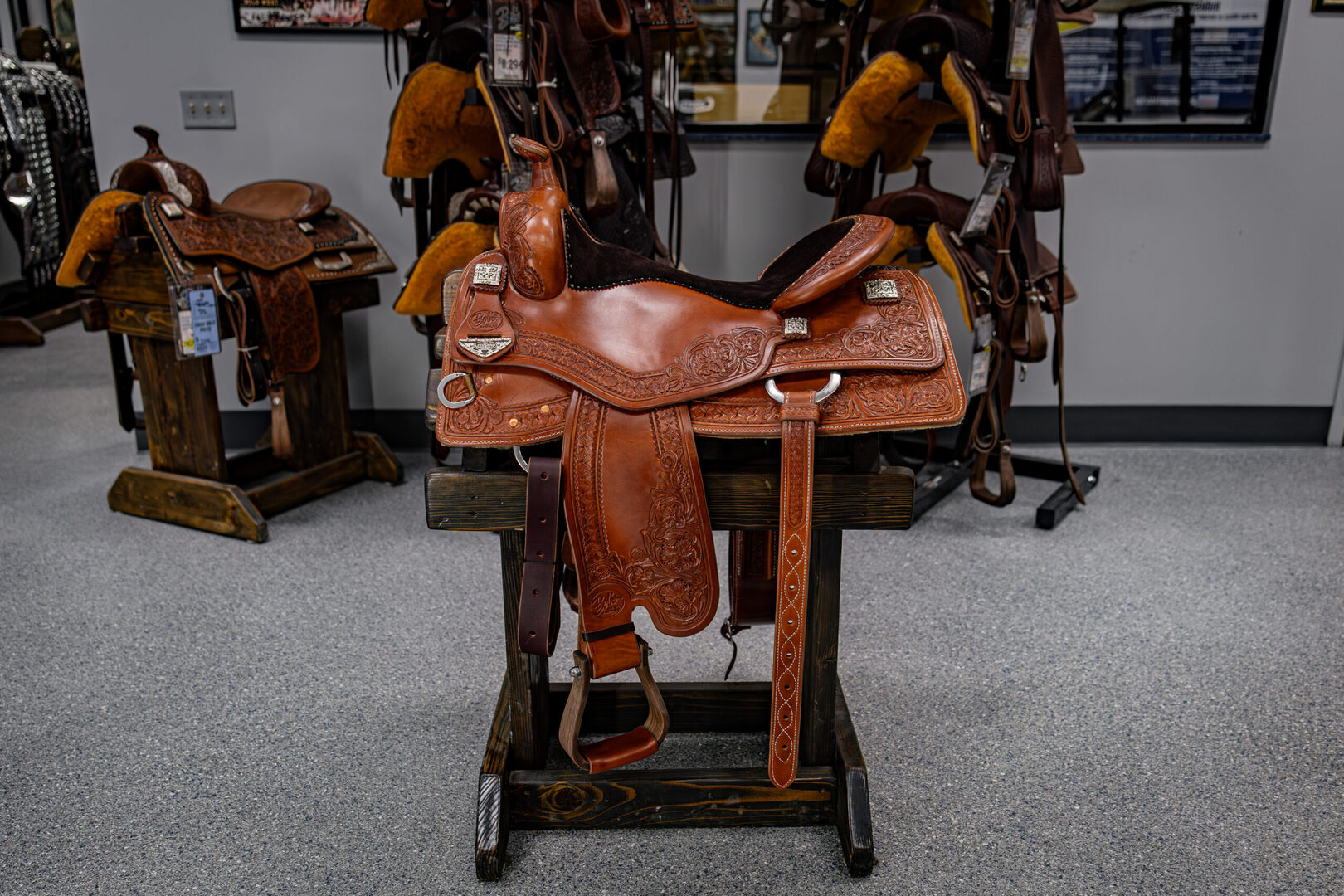 View Inventory: https://leonardtrailers.com/inventory/45292 Tim McQuay Reining Saddle Tree: 17in T. McQuay (8 1/2” x 6 1/2) Cantle: 3 1/4” DL Seat Style: 16.5” Single Narrow Padding T. McQuay Seat, Seat Color: Dark Chocolate Rough Out Rear Cinch included Since 1977, Bob’s Custom Saddles are built with the finest trees available; from hand-picked, top-grain hermann oak leather, real sheepskin, and hand-engraved sterling silver or silver overlay. Bob’s hand-tool every saddle, hand-lay every ground seat, hand-stitch every seat, and hand-craft each cantle. Their superior quality, craftsmanship, and performance are a prime choice for premier horsemen around the world. Proudly presented by Leonard Truck & Trailer. Stock Number:45292